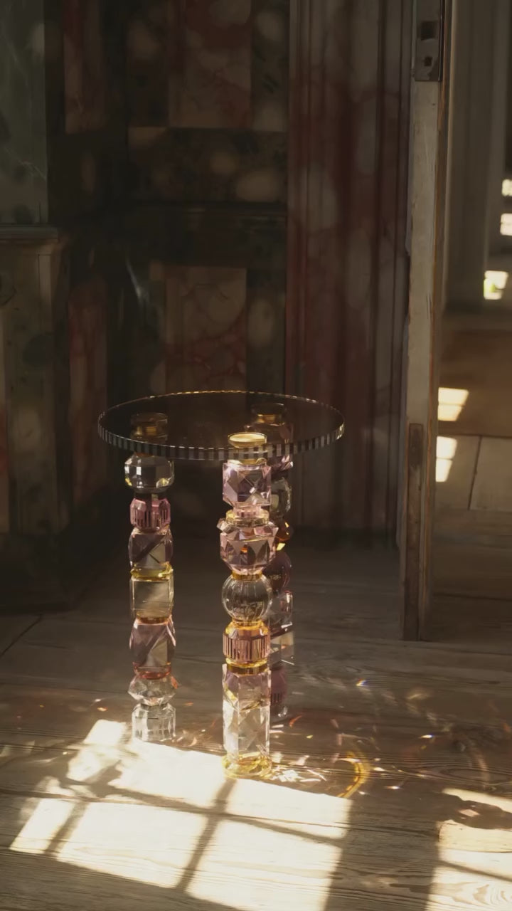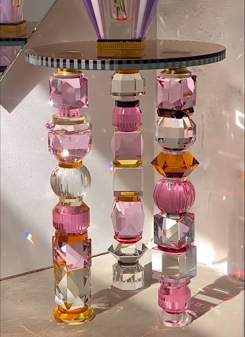 Description: The Amira tables are true crystal masterpieces, now shine in new elegant and striking shades of soft and bold rose. These two designs are a celebration of excess, where crystal takes centre stage in a dazzling display of daring artistry.