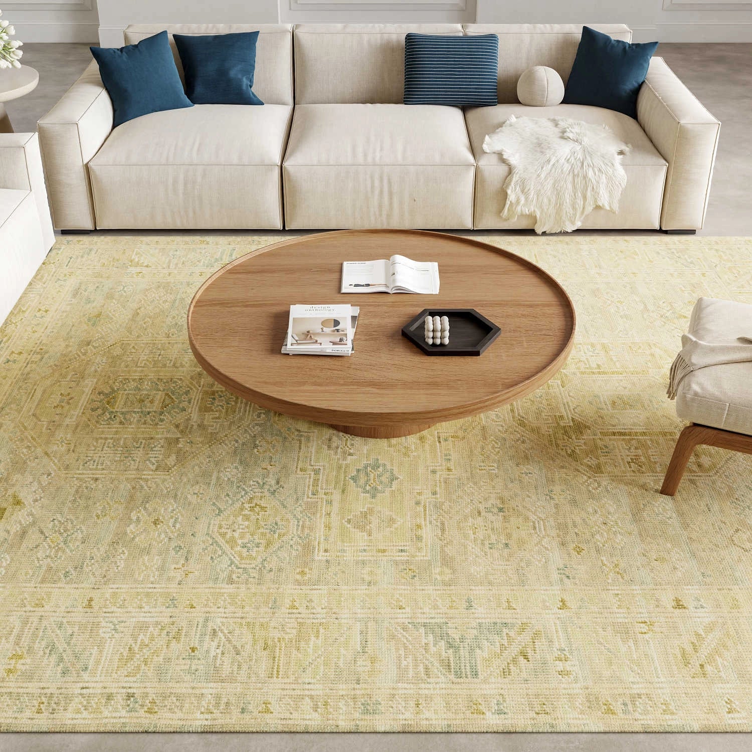 Description: Bring an air of quiet elegance to your home with this traditional rug from the Giselle collection. The soft grey ground is adorned with geometric motifs in shades of grey and green, each finished with a space-dyed effect for the look of a well-loved heirloom. This rug is hand-knotted from wool with fringe edges, lending an enduring touch of warmth and beauty to living rooms and bedrooms.