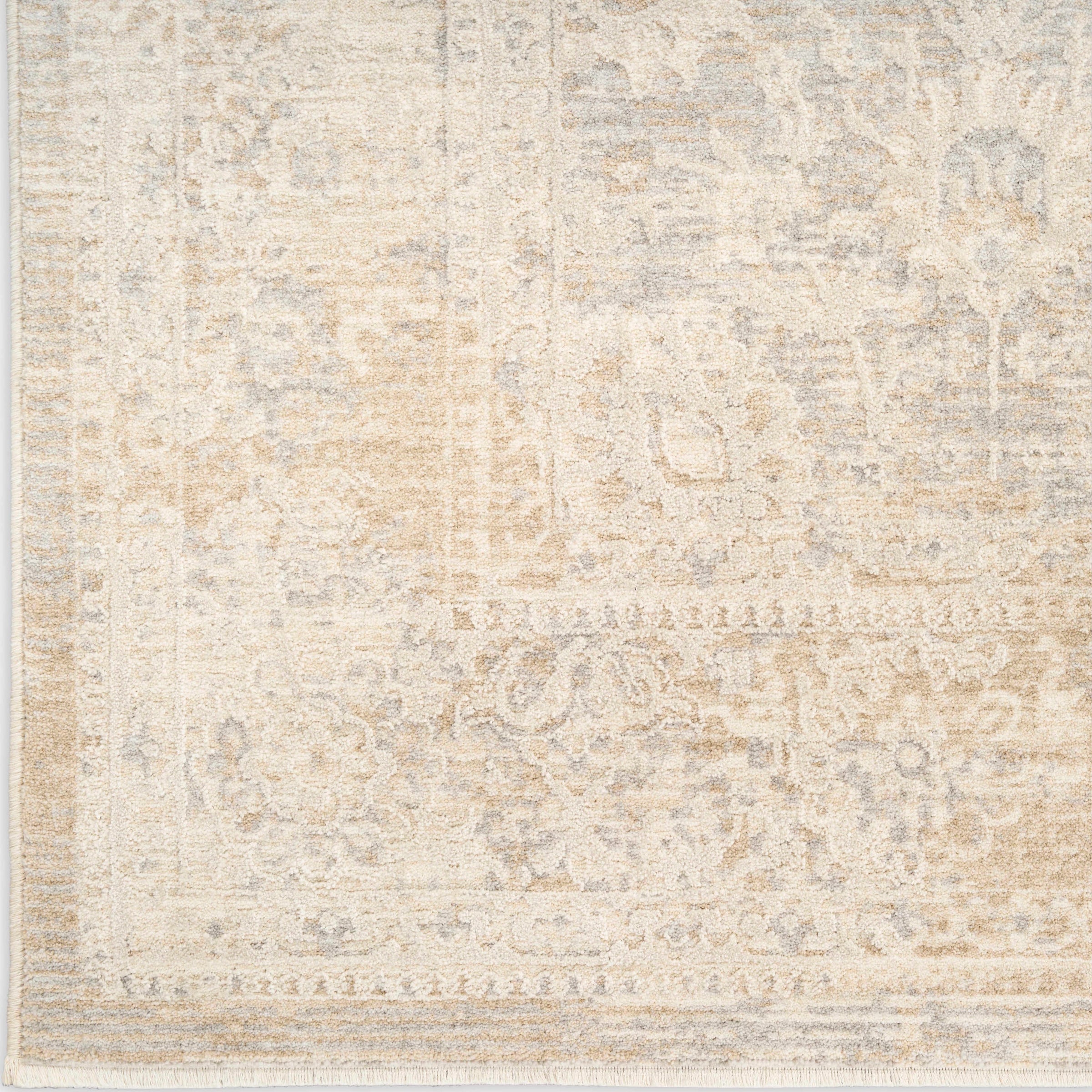 Description: Invite understated elegance into your home with this vintage-style beige rug from the Delphine collection. The intricate traditional motifs and plush pile instantly warms living rooms and bedrooms. Finished with short fringe for added personality.