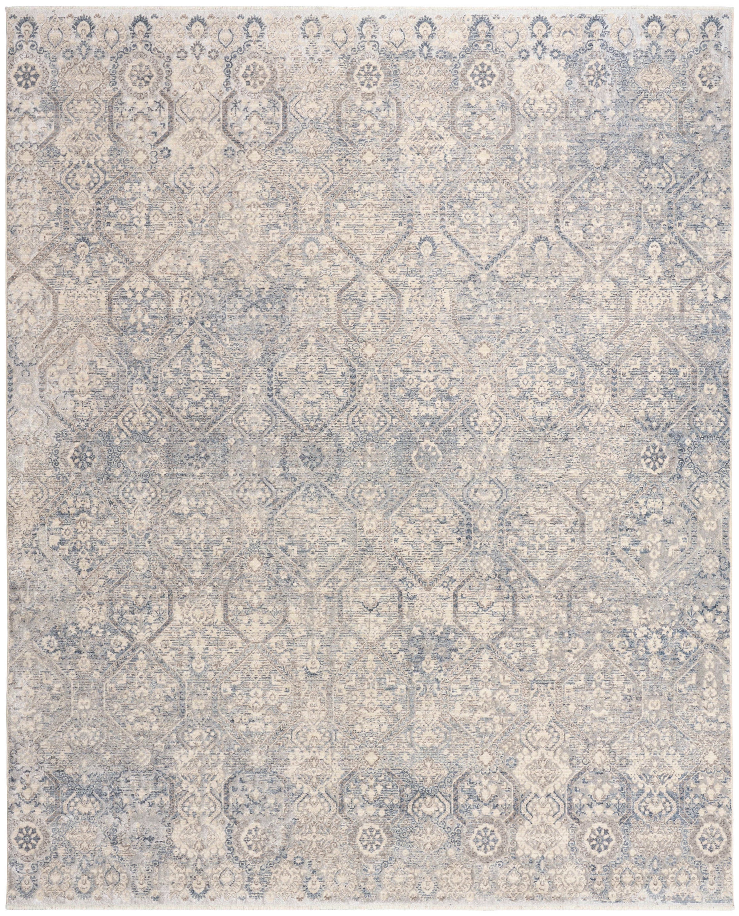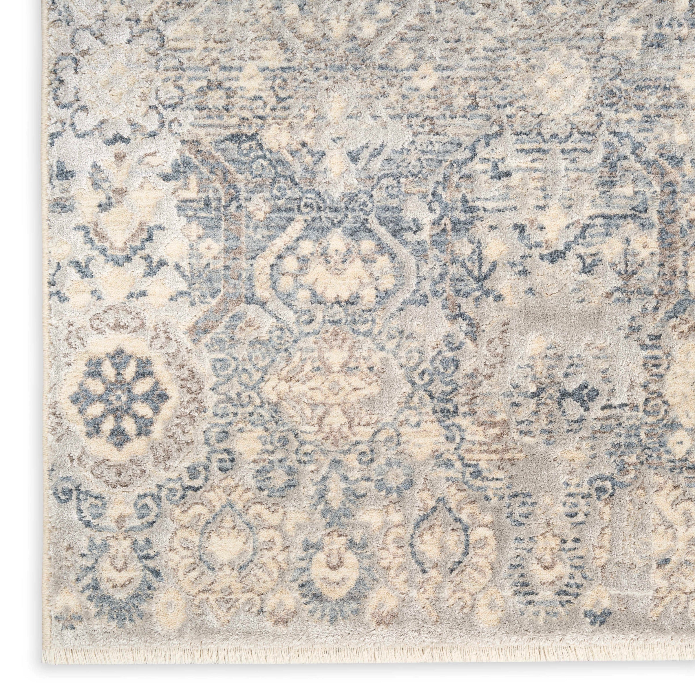Description: Soften your surroundings with this vintage-style blue rug from the Delphine collection. A mix of soft hues, artful fading, and space-dyed yarns create a welcoming feel when placed in a living room or bedroom. Machine-made with a plush pile and short fringe edges for added personality.