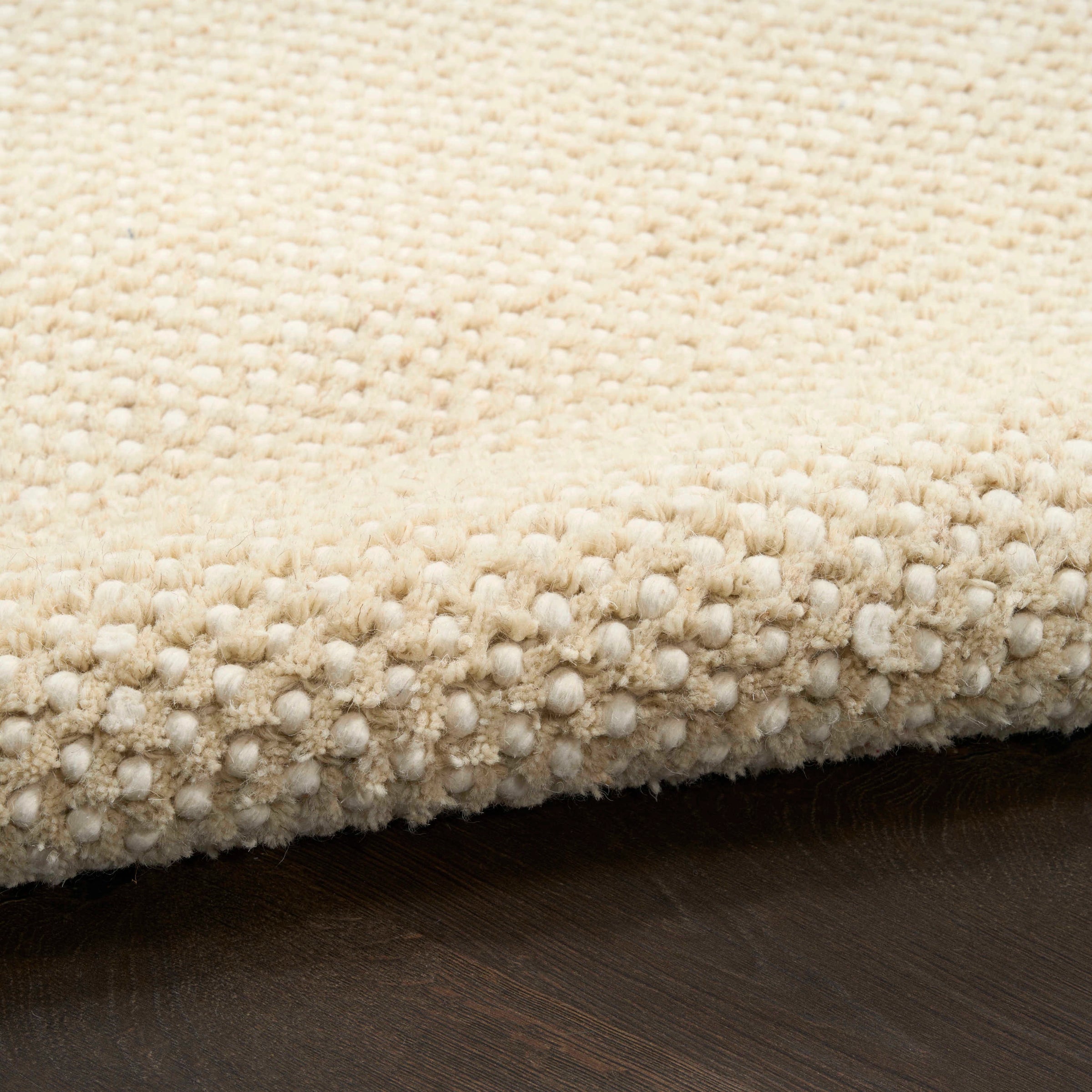 Description: This ivory and beige rug combines subtle texture with warm tones, creating a comforting foundation for your space. Handwoven from a wool and polyester blend for lasting style.