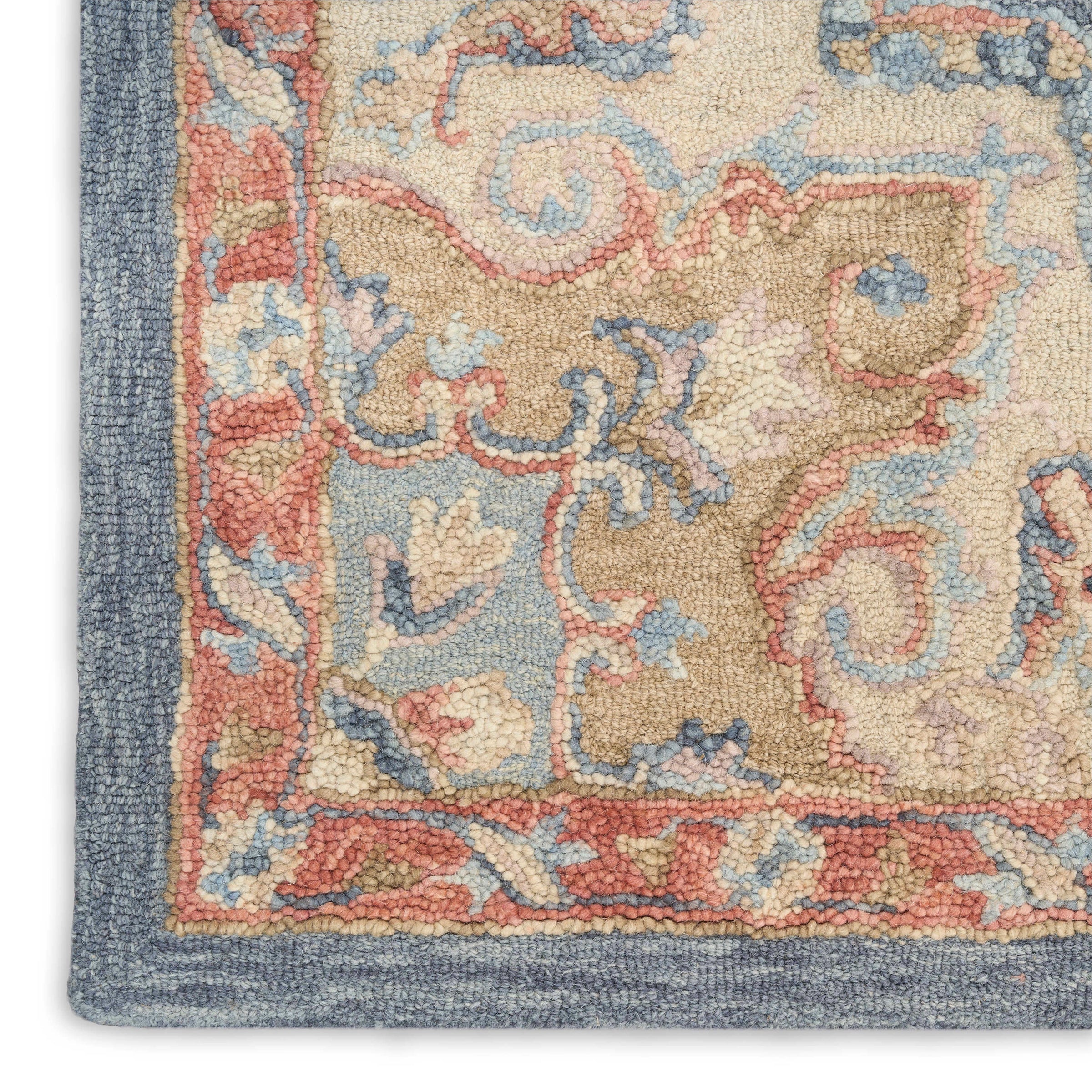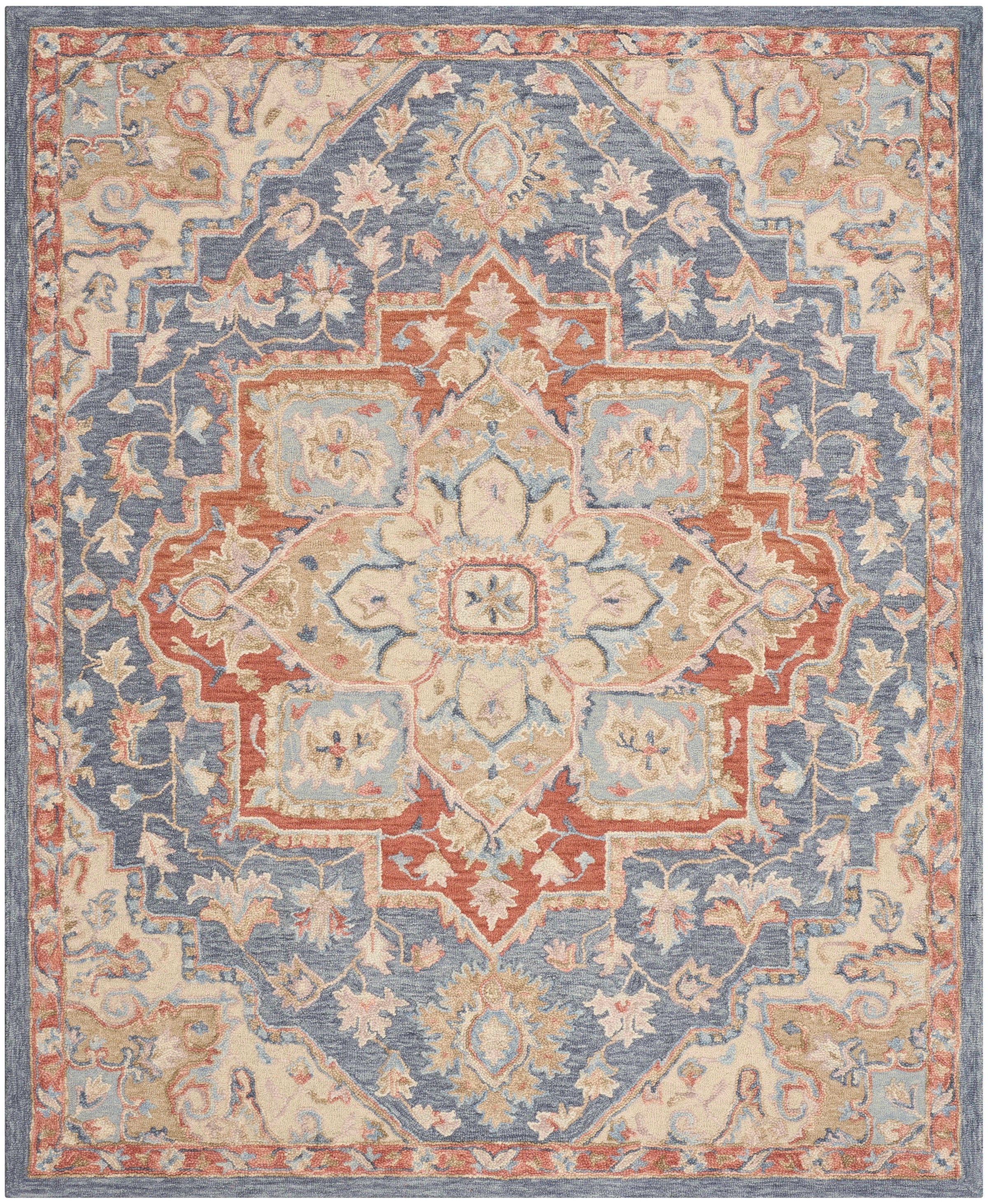 Description: Equal parts charming and classic, this blue Persian-style rug from the Goldie collection adds character to any room. Handmade from 100% wool, its tufted with a high-low pile that adds subtle depth to living rooms and bedrooms alike.