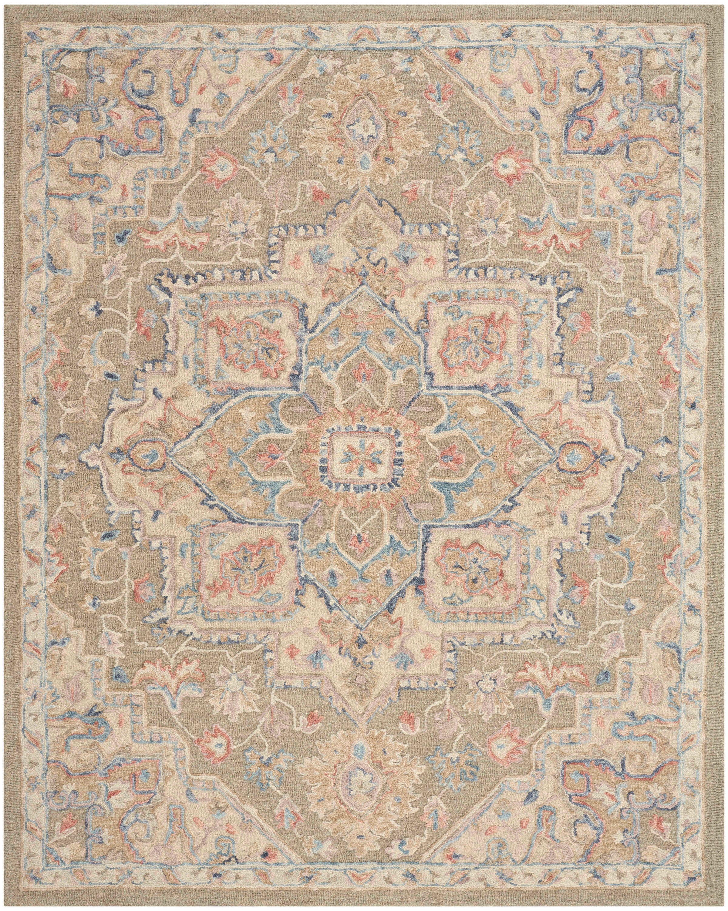 Description: Equal parts charming and classic, this green Persian-style rug from the Goldie collection adds character to any room. Handmade from 100% wool, its tufted with a high-low pile that adds subtle depth to living rooms and bedrooms alike.
