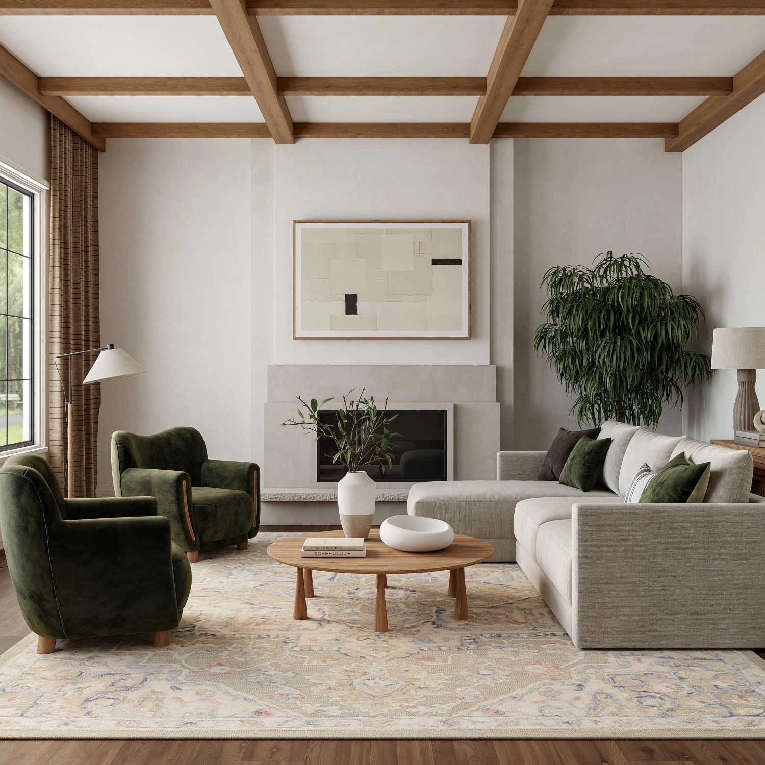 Goldie Green Ivory Wool Persian Style Area Rug