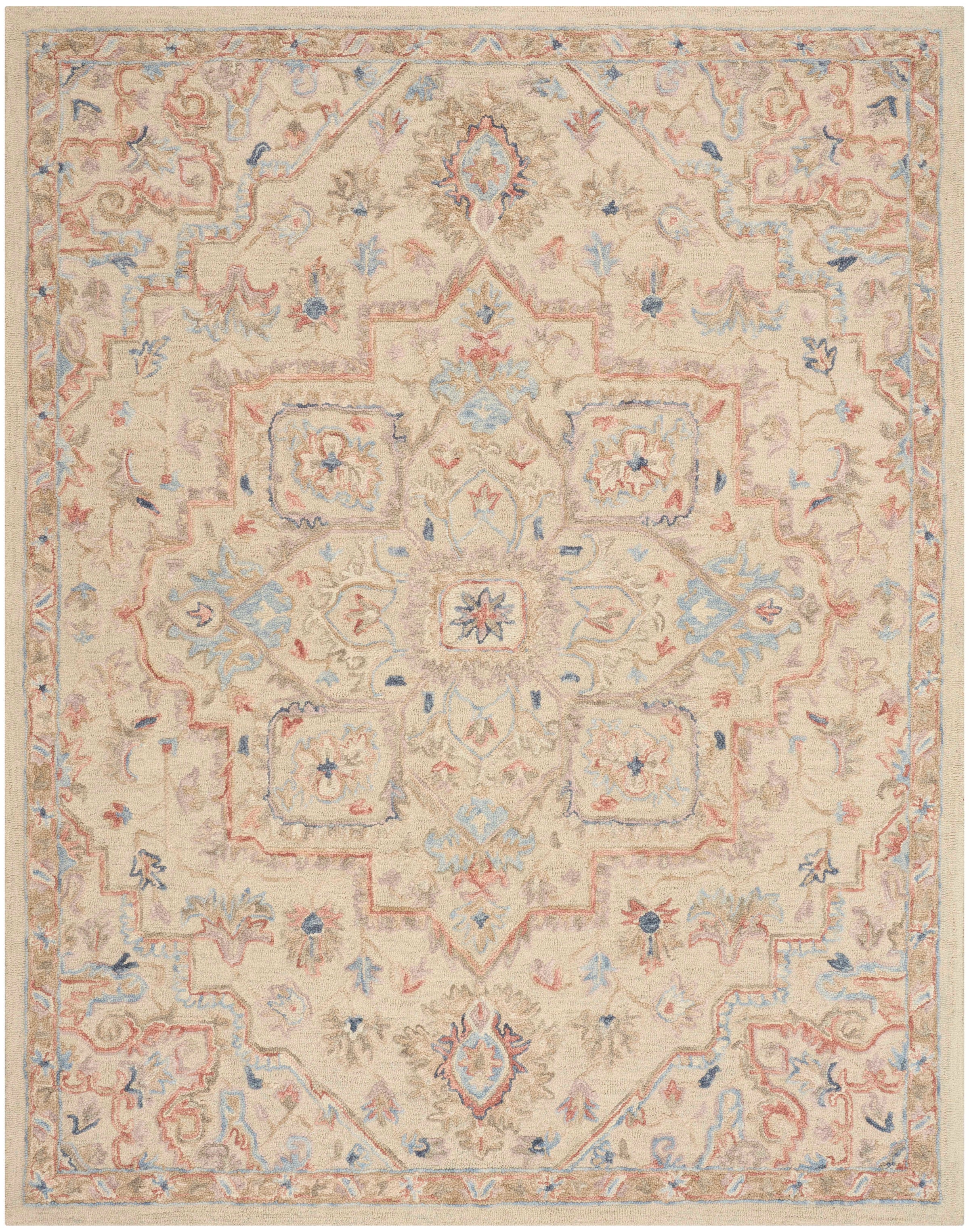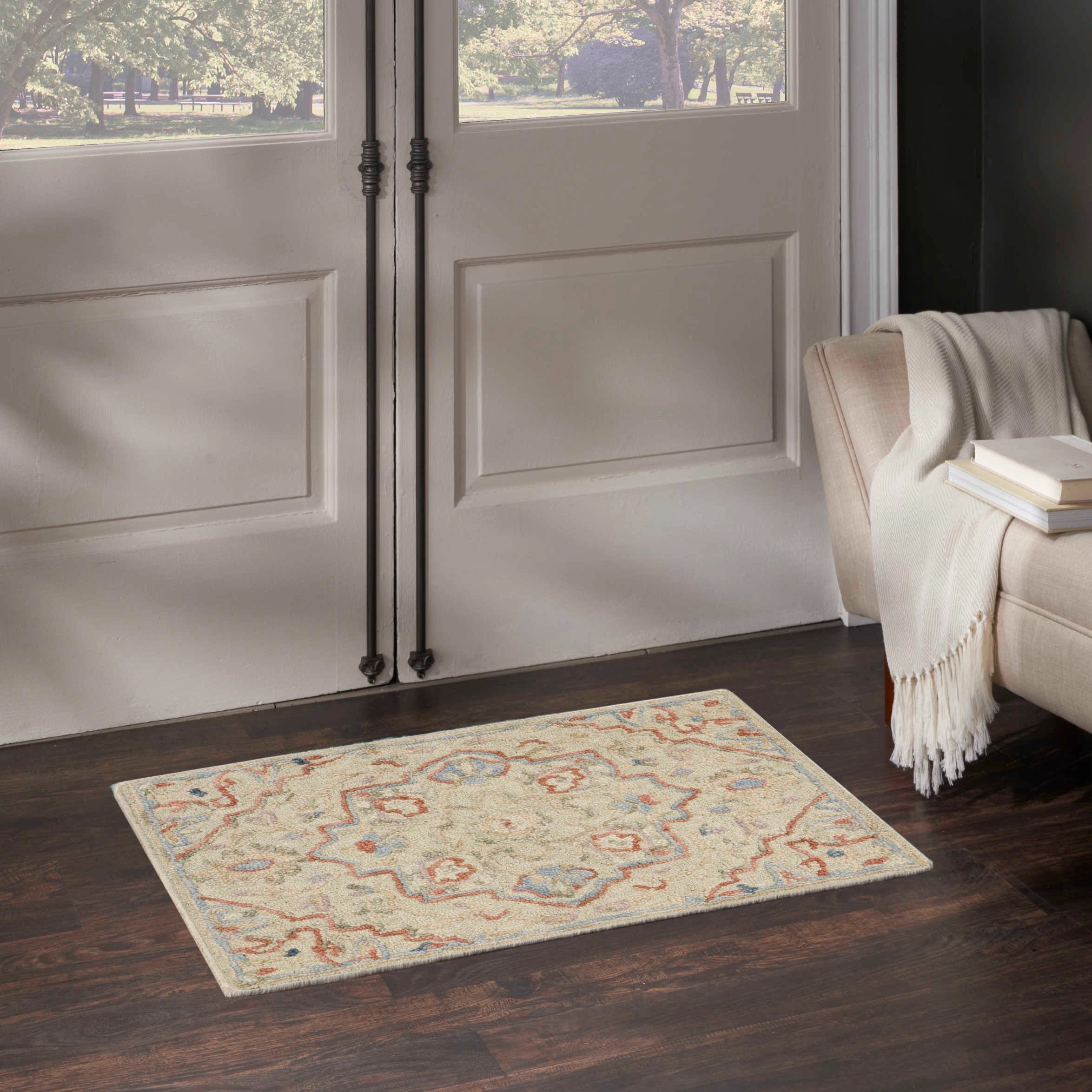 Description: Equal parts charming and classic, this ivory Persian-style rug from the Goldie collection adds character to any room. Handmade from 100% wool, its tufted with a high-low pile that adds subtle depth to living rooms and bedrooms alike.