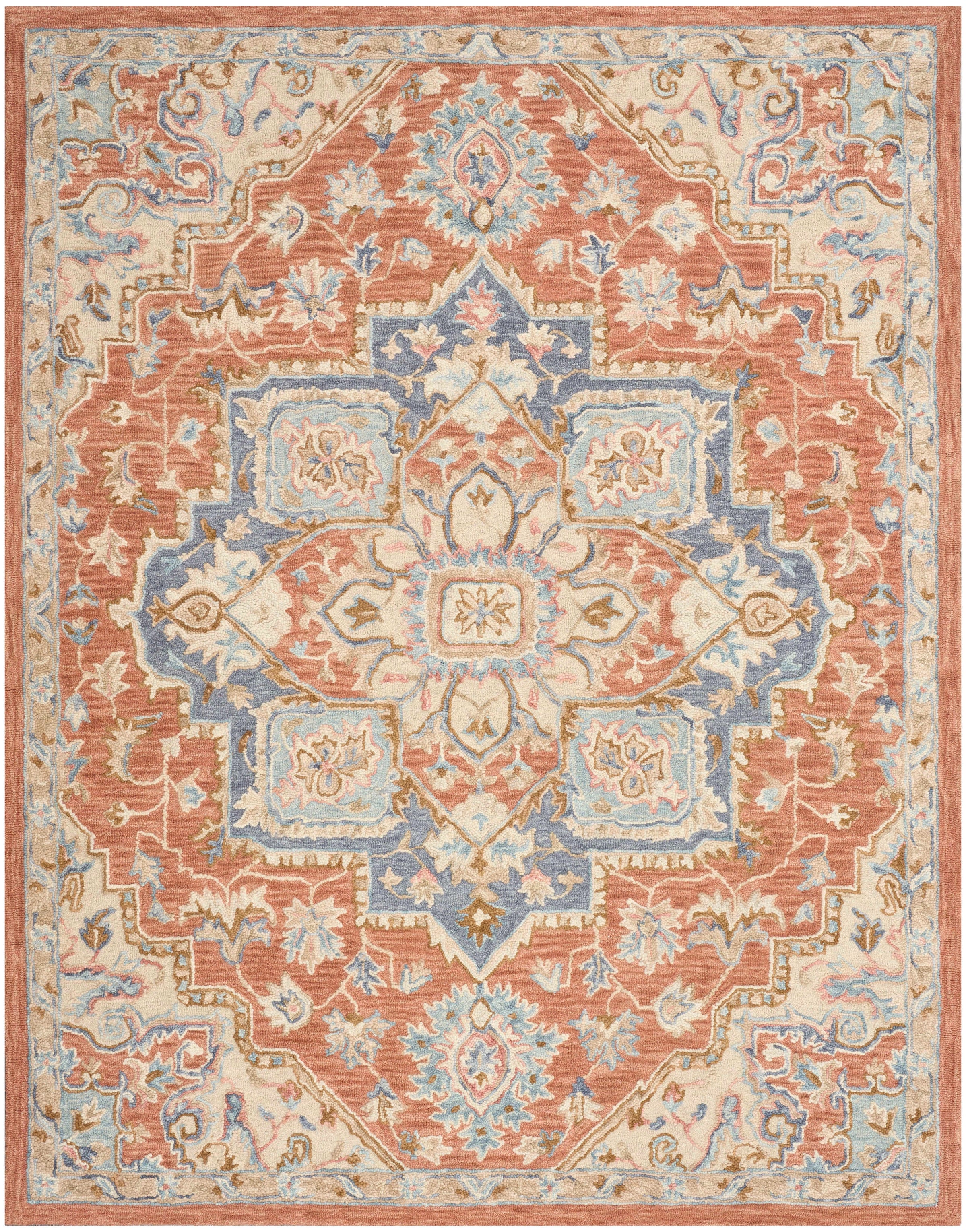 Description: Equal parts charming and classic, this rust Persian-style rug from the Goldie collection adds character to any room. Handmade from 100% wool, its tufted with a high-low pile that adds subtle depth to living rooms and bedrooms alike.