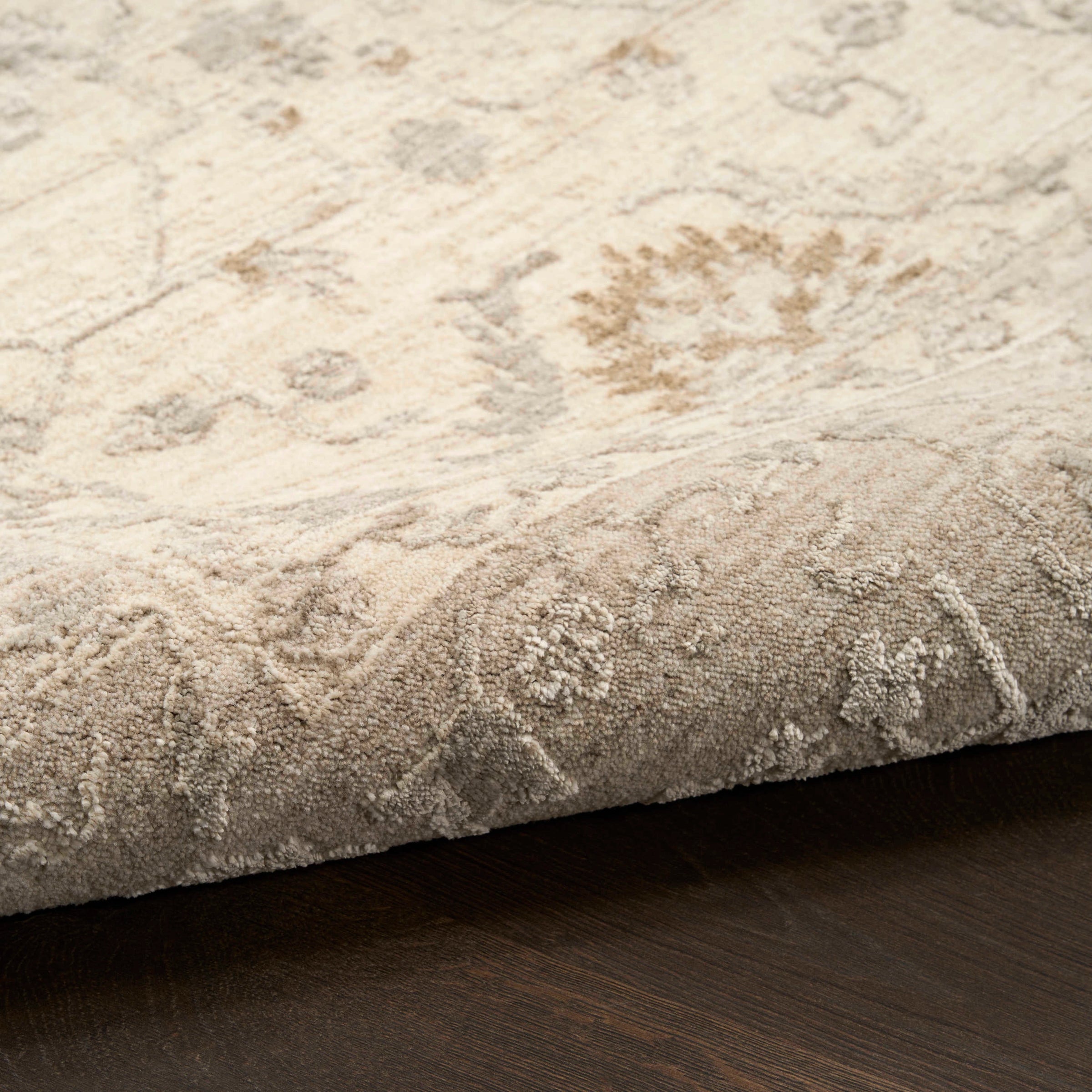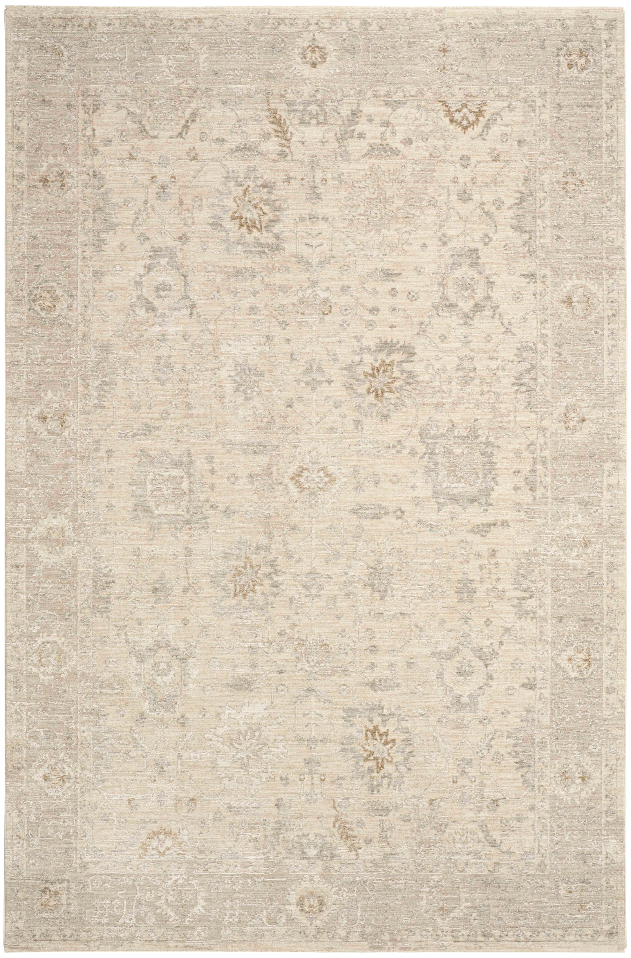 Description: Bring a sense of calm to your space with this vintage-inspired grey rug from the Livia collection. The delicate pattern, presented in a cool neutral palette, adds a sophisticated touch to traditional and modern spaces alike. Made from polyester with a distressed finish, silk-like sheen, and short fringe edges.