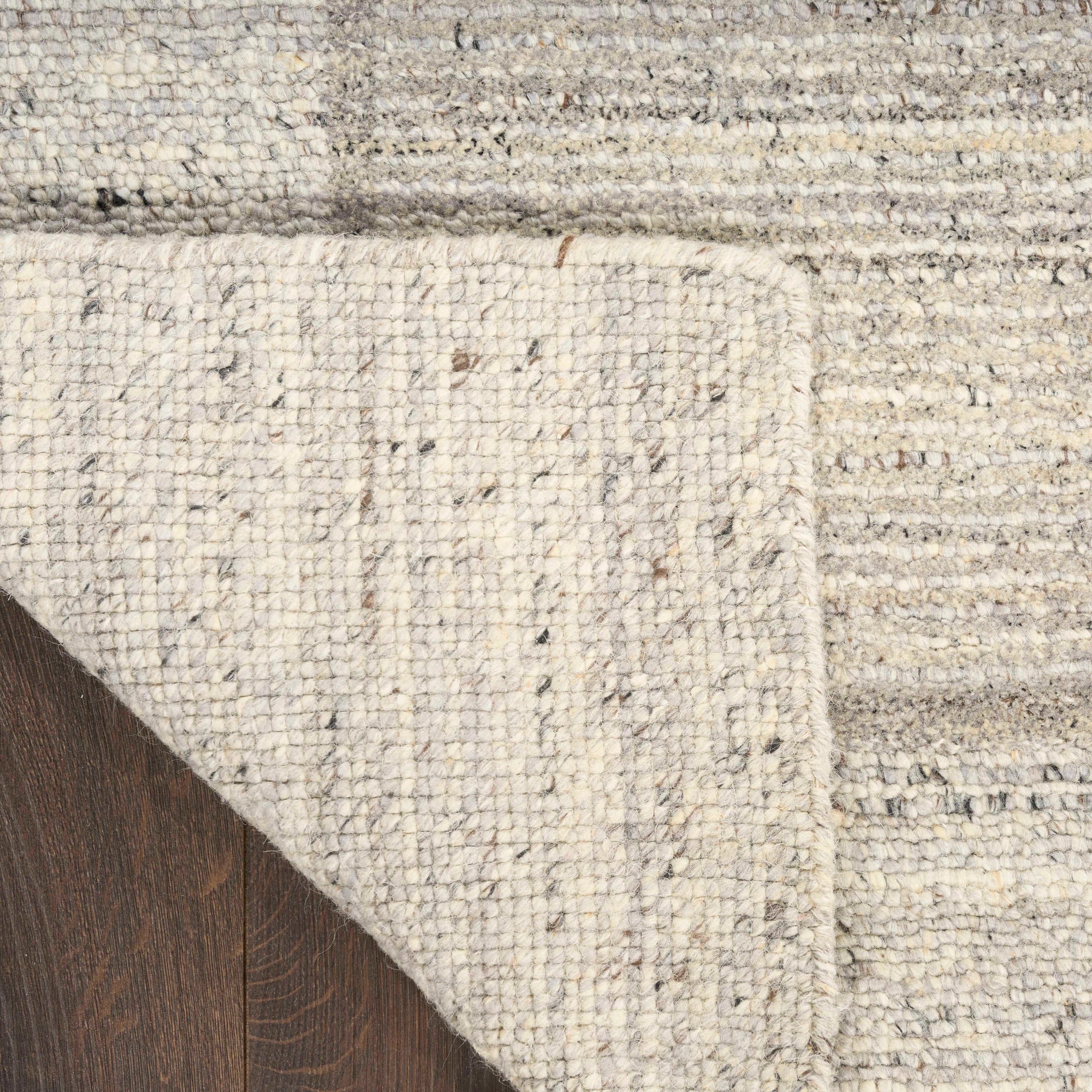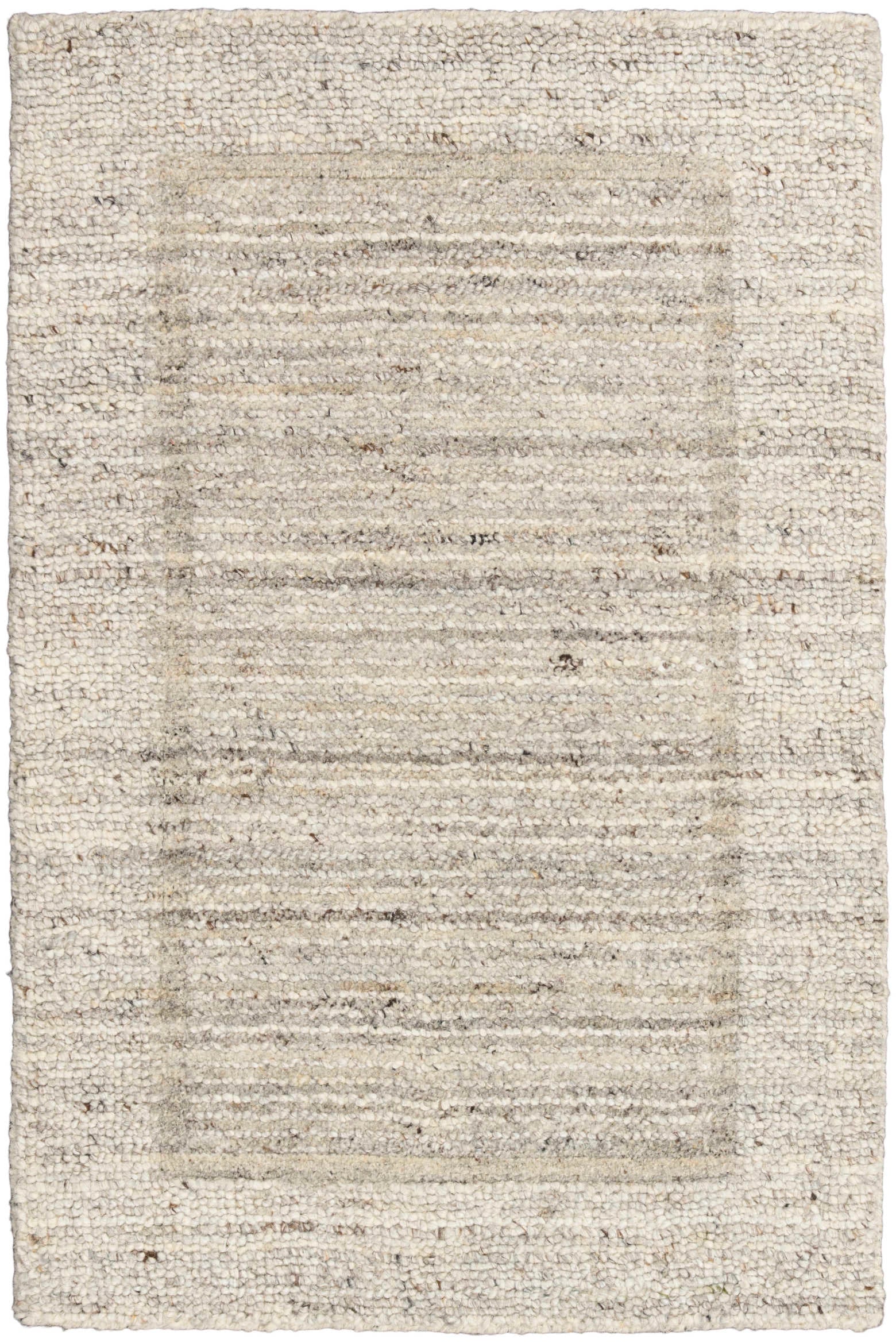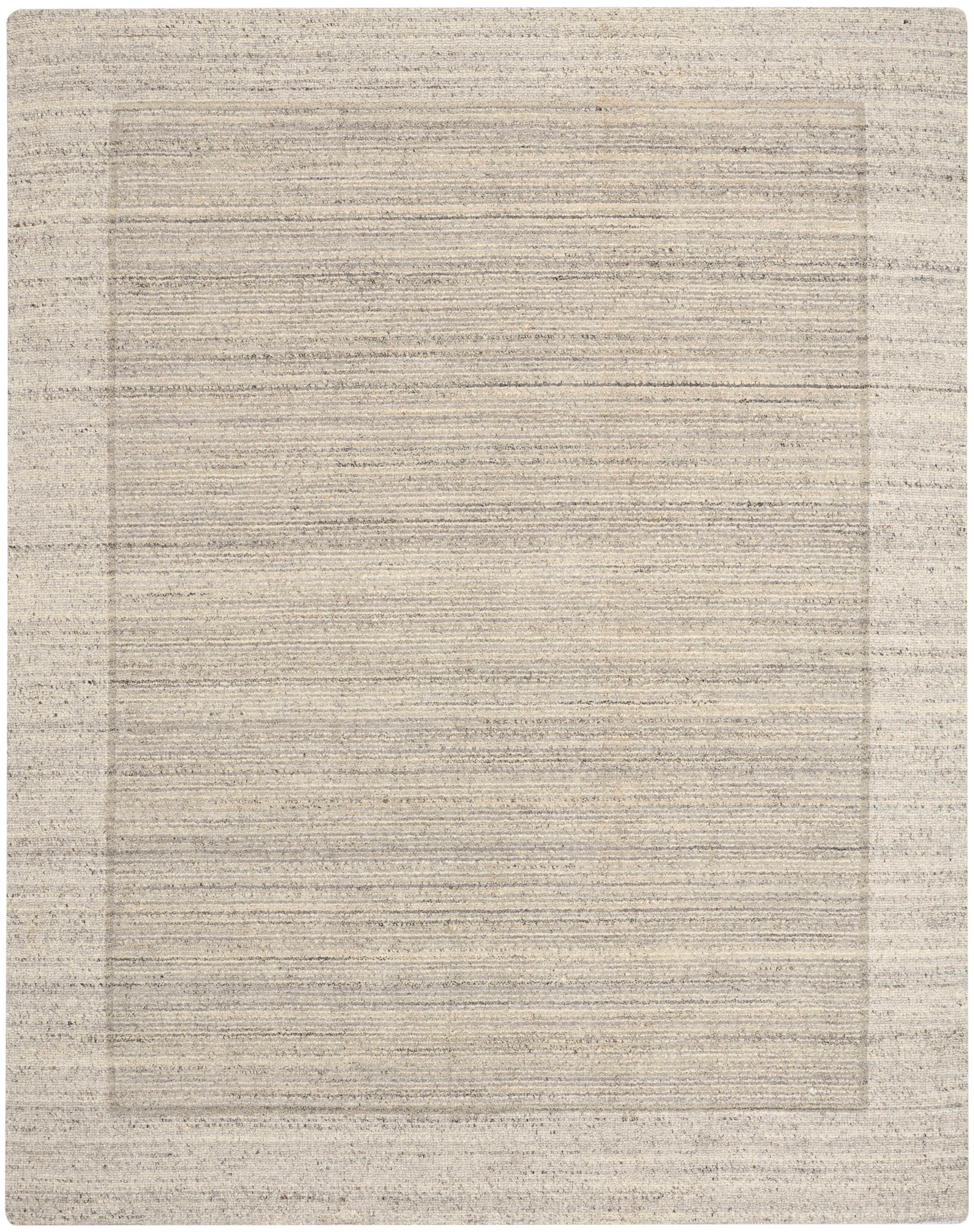 Description: Add depth and dimension to your space with this contemporary rug from the Margo collection. Handwoven with gentle striations and soft border details in grey and ivory.