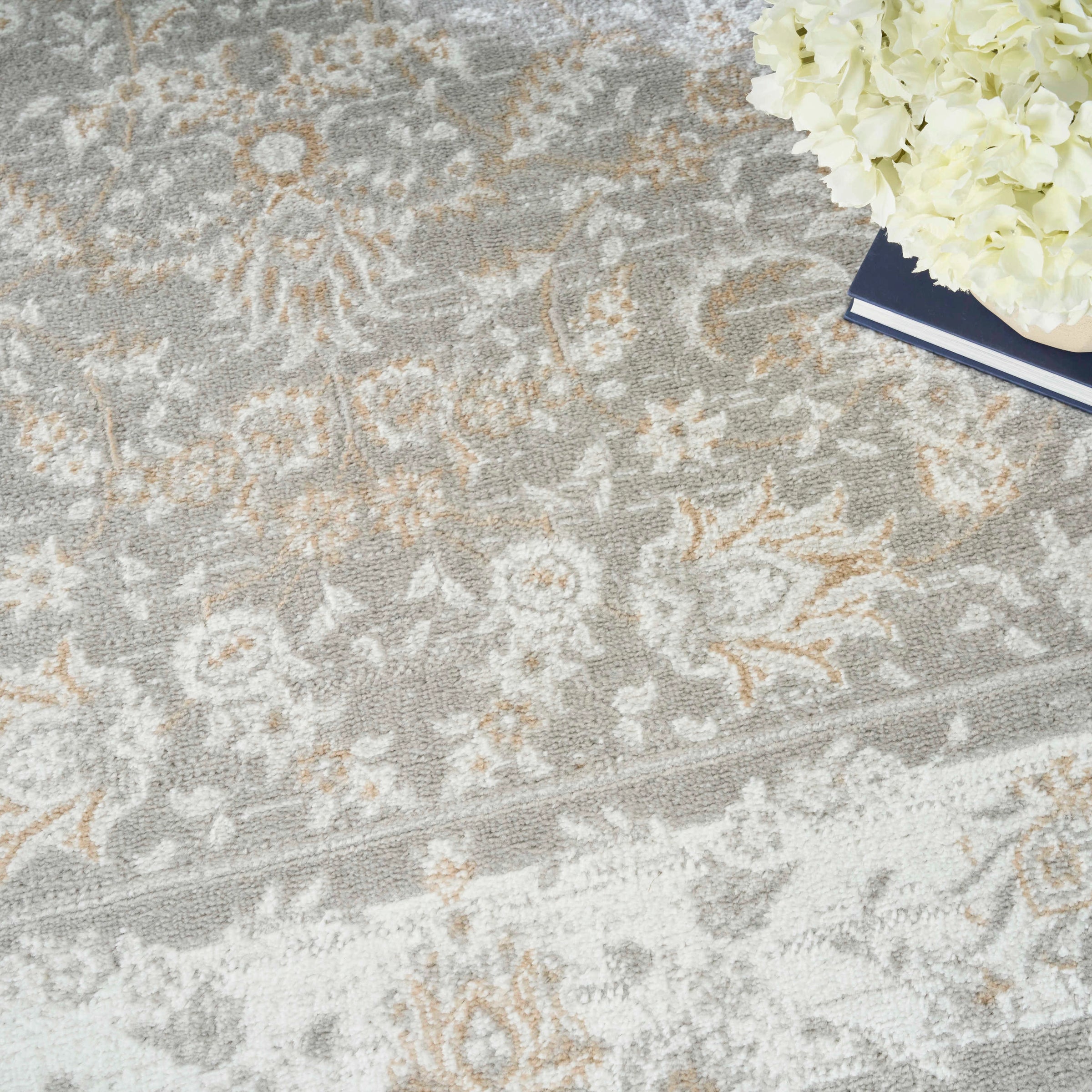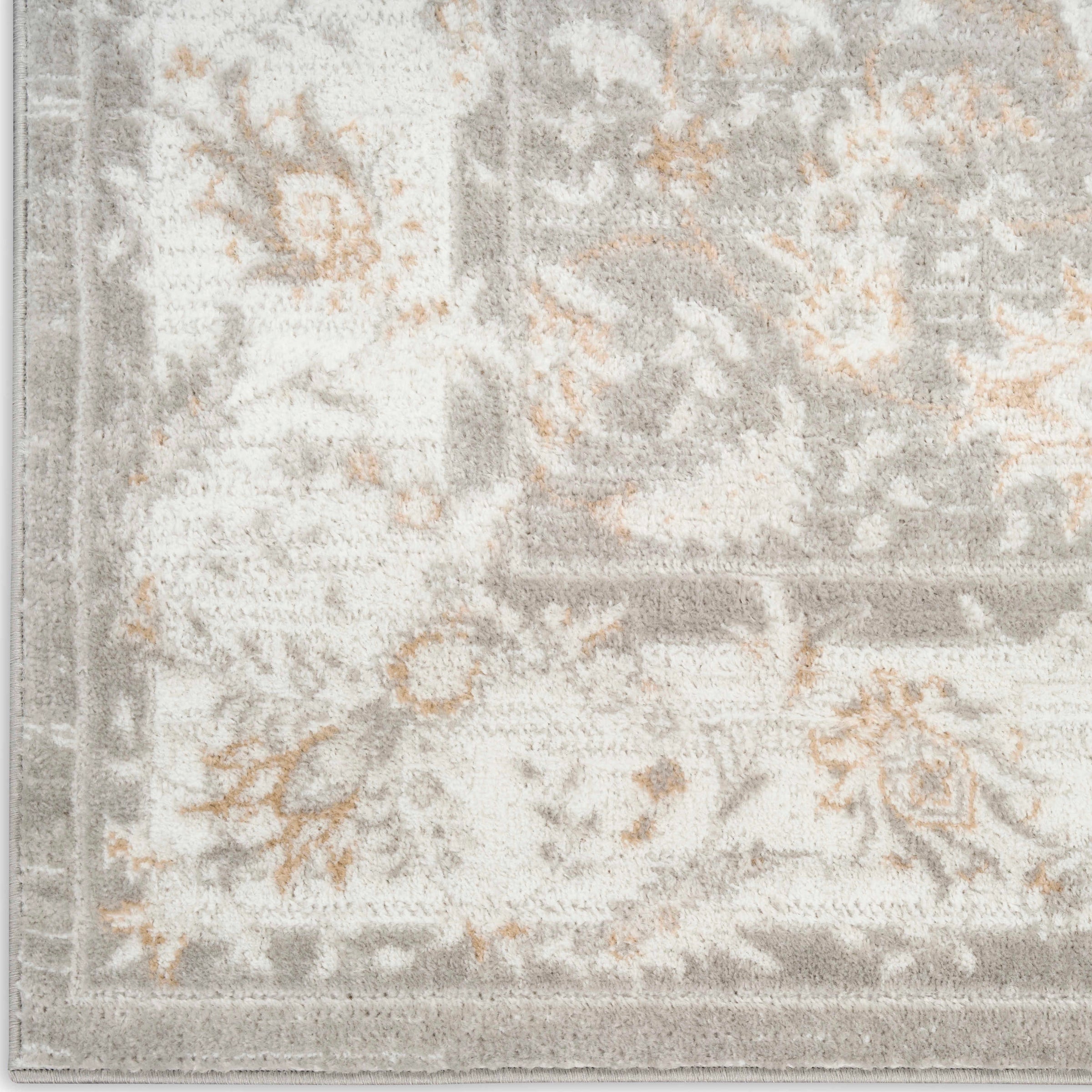 Description: Ground your space in the ornate charm of this ivory vintage-inspired rug from the Marisol collection. The detailed floral vine pattern is complemented by a lightly antiqued effect and subtle sheen for an instant dose of personality. Expertly crafted with a flat weave construction that has a surprisingly soft texture.
