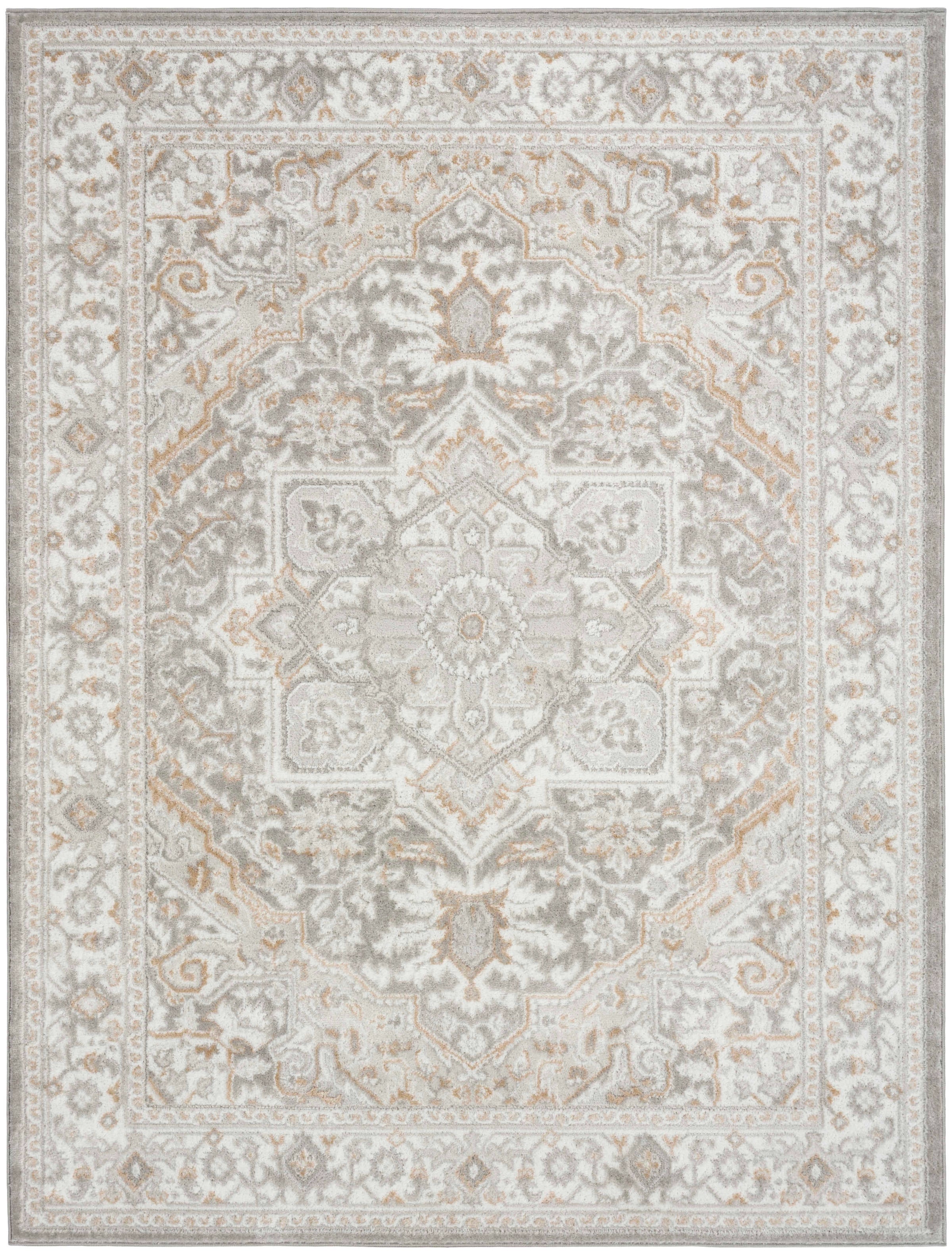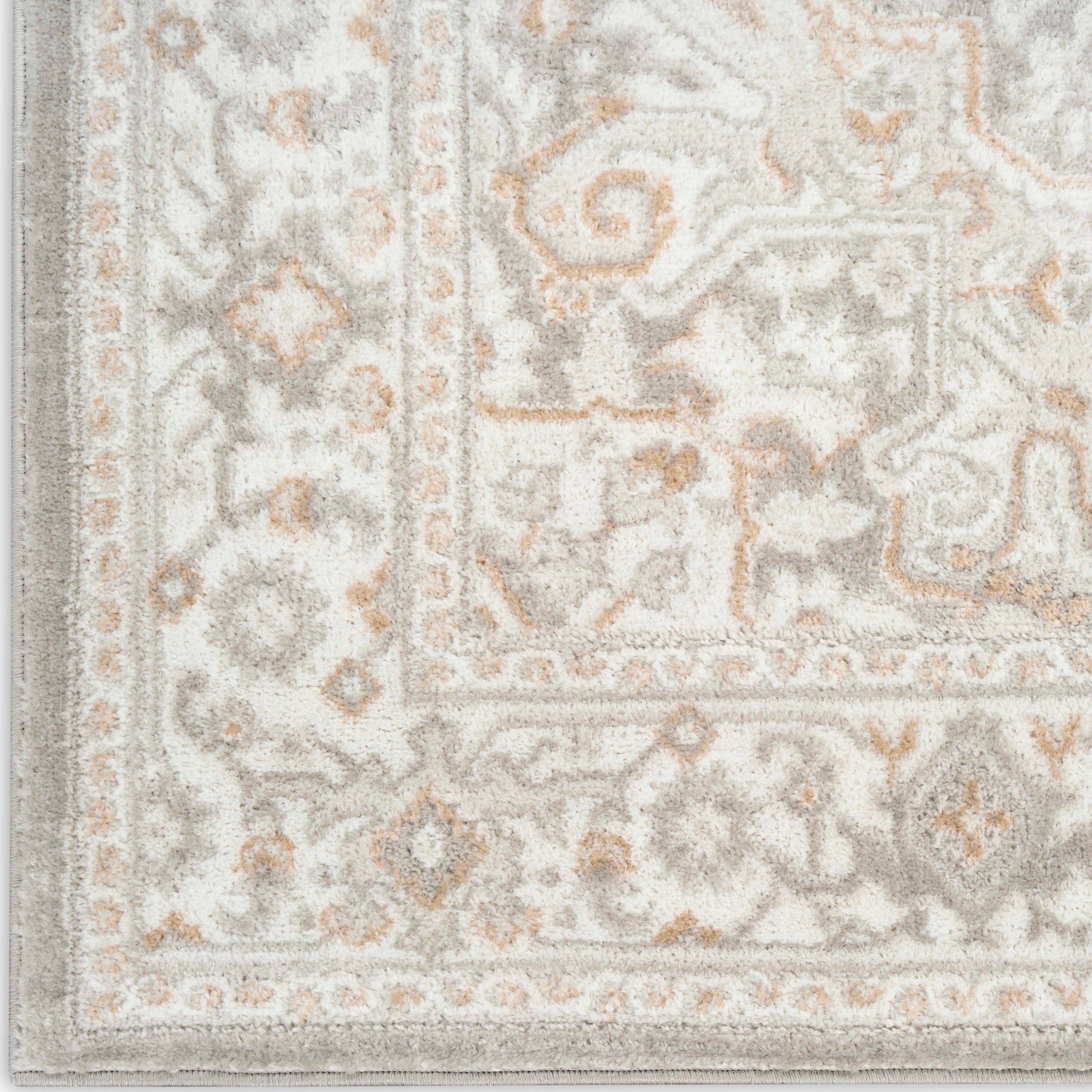 Description: Bring refined style to your space with this Persian-style light grey rug from the Marisol collection. The ornate floral medallion pattern is presented in cozy neutrals and earth tones that make decorating easy. This traditional rug is flat woven with a subtle sheen and soft texture that feels great on bare feet.