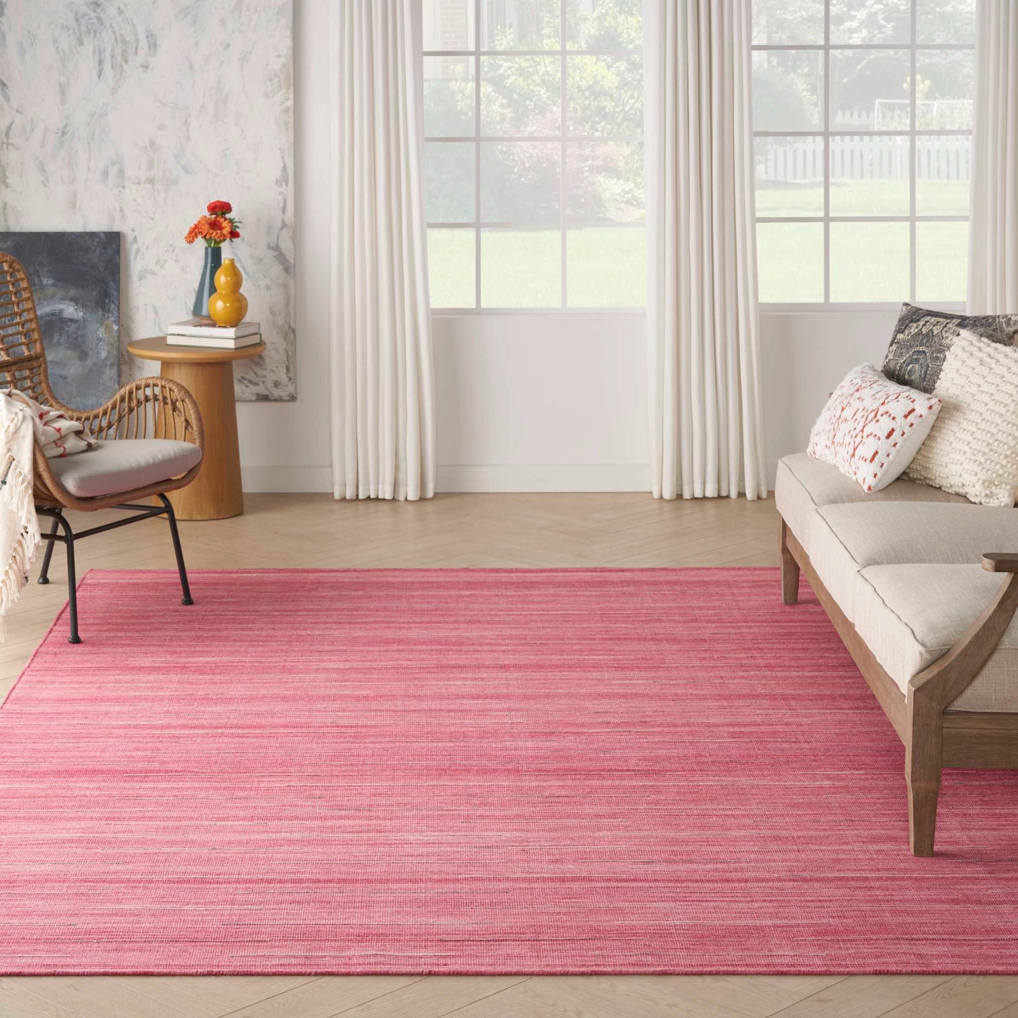 Description: With its multi-toned rose-pink ground interwoven with strips of ombre yarns, this colorful rug from the Maxine Collection adds depth to your dcor. The lightweight, flat weave design is made from a blend of wool and cotton for lasting beauty. Place Interweave in your living room or bedroom for an instant dose of modern style.