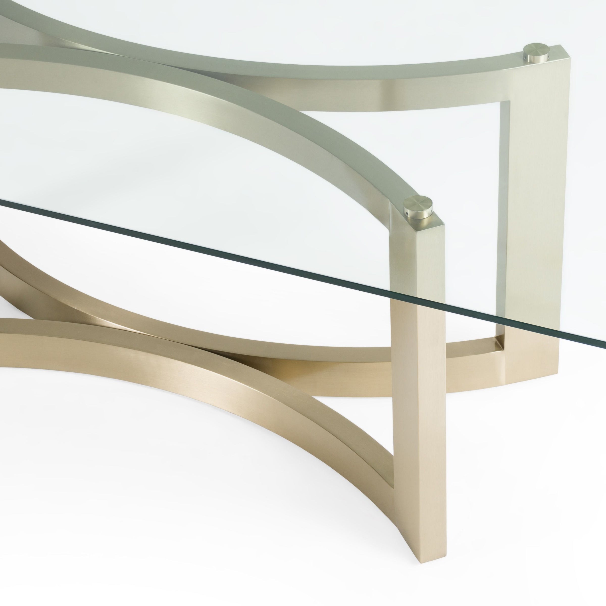 Description: The Allison Modern Rectangular Dining Table exudes sophistication and contemporary flair with its exquisite pairing of a clear glass top and a sculptural brushed brass base. The gleaming glass surface appears to float, offering a visual lightness that contrasts beautifully with the bold strength of its base. This masterpiece becomes a striking centerpiece, blending modern luxury with timeless elegance. Transform your dining experience into a refined affair, making every gathering a celebration of style and design excellence.