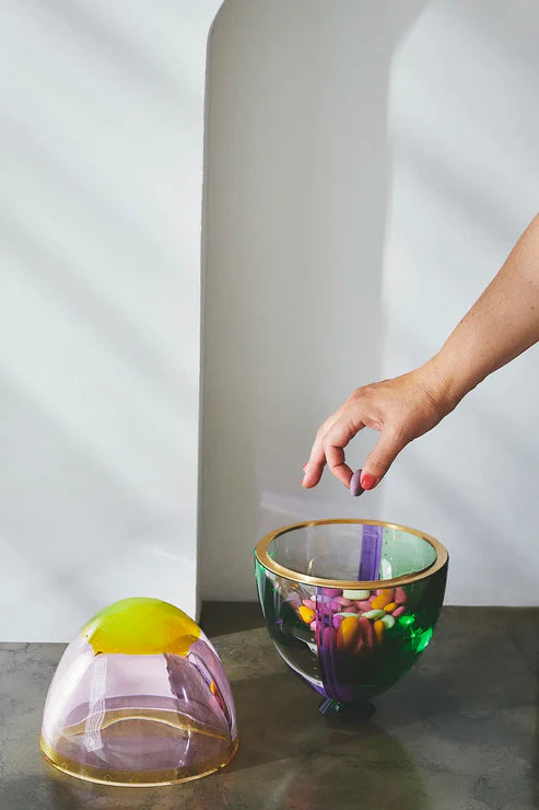 Description: Introducing a playful eggs-travaganza! Inspired by the festive Easter season, the Imani Eggs embody a fusion of naughtiness and style. These crystal bonbonnieres are designed to safeguard your most precious treasures. The Imani Egg features two delicately interlocking pieces, gracefully rising on a crystal base with a captivating design that combines colours, meticulous finishes, and hand-craved shapes that conceal a magical symbolism. A truly unique object exuding enchantment and opulence. Available in three sizes, inviting you to create original and wonderful combinations that will elevate your space.