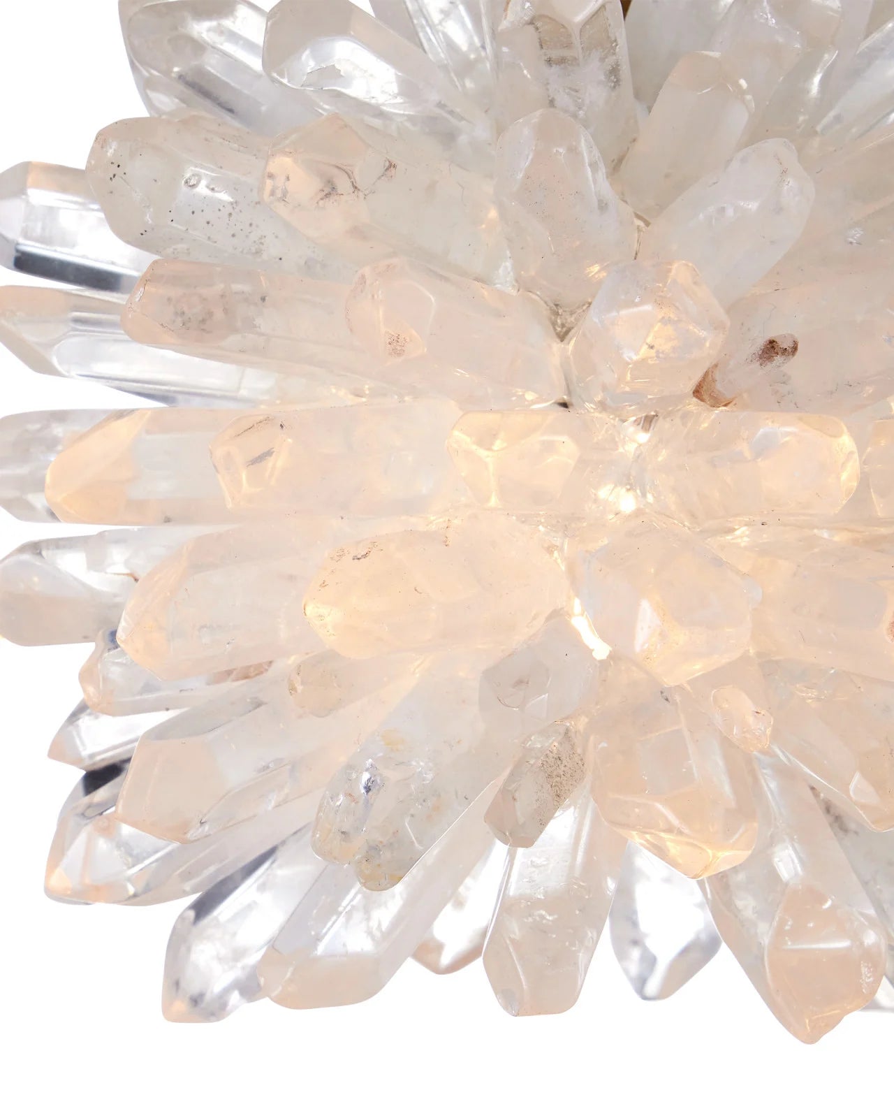 Description: The petite Sabine Pendant is a burst of brightness with each of its spikes made of natural quartz. The crystal is very reflective so it creates a nice glow when illumination strikes it. The white pendant takes on another aspect of this natural material, as the textural quality of the crystal creates a more dynamic profile. It hangs from a slender cord to keep the design simple.