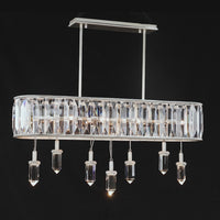 Description: The Tessia Fifteen-Light Horizontal Chandelier is a striking modern statement piece, featuring a textural metal frame in Champagne Silver adorned with faceted crystal inlays. Delicate crystal accents gracefully hang beneath the frame, catching and reflecting light to create a sparkling, layered effect that adds depth and glamour to any interior. This piece supports 7 G4 LED lightbulbs and 8 E12 lightbulbs. E12 lightbulbs not included with purchase.