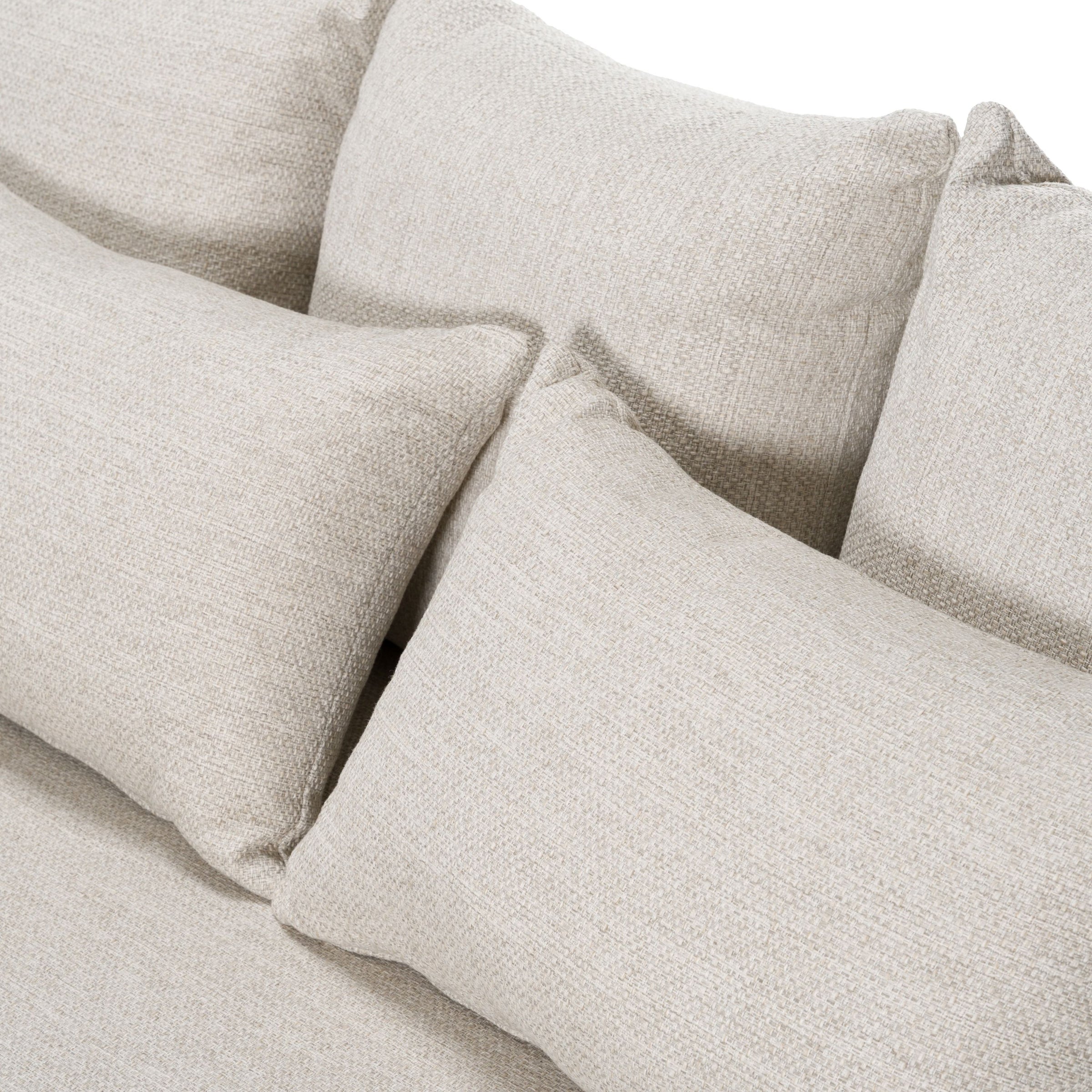 Bask in the understated elegance of the Helene Beige 3 Seat Outdoor Fabric Chair, where refined lines meet luxurious comfort under open skies. Swathed in serene Beige fabric, this seating masterpiece brings the tranquility of a Mediterranean escape to your outdoor haven. Seven plush toss pillows provide an inviting touch, while its robust aluminum frame offers lasting durability against nature's whims. Wrapped in water and stain-resistant upholstery, this fully assembled sofa is an effortless blend of sophistication and practicality, promising serene moments al fresco.