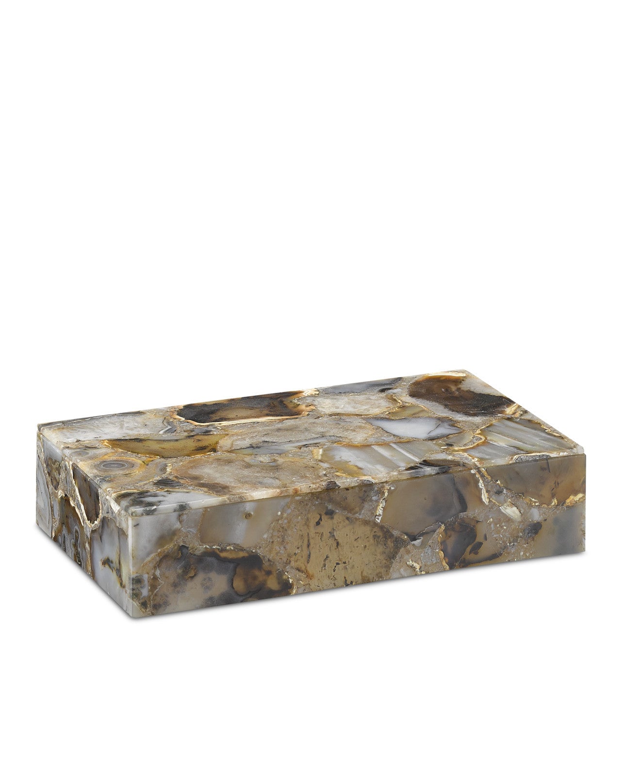 Description: Made of black agate, the Leonie Small & Large Box is a clean-lined design with a snug fitting top in natural stone patterning. Pair the decorative agate box with the Malaga Large Box to see how they stack so beautifully.