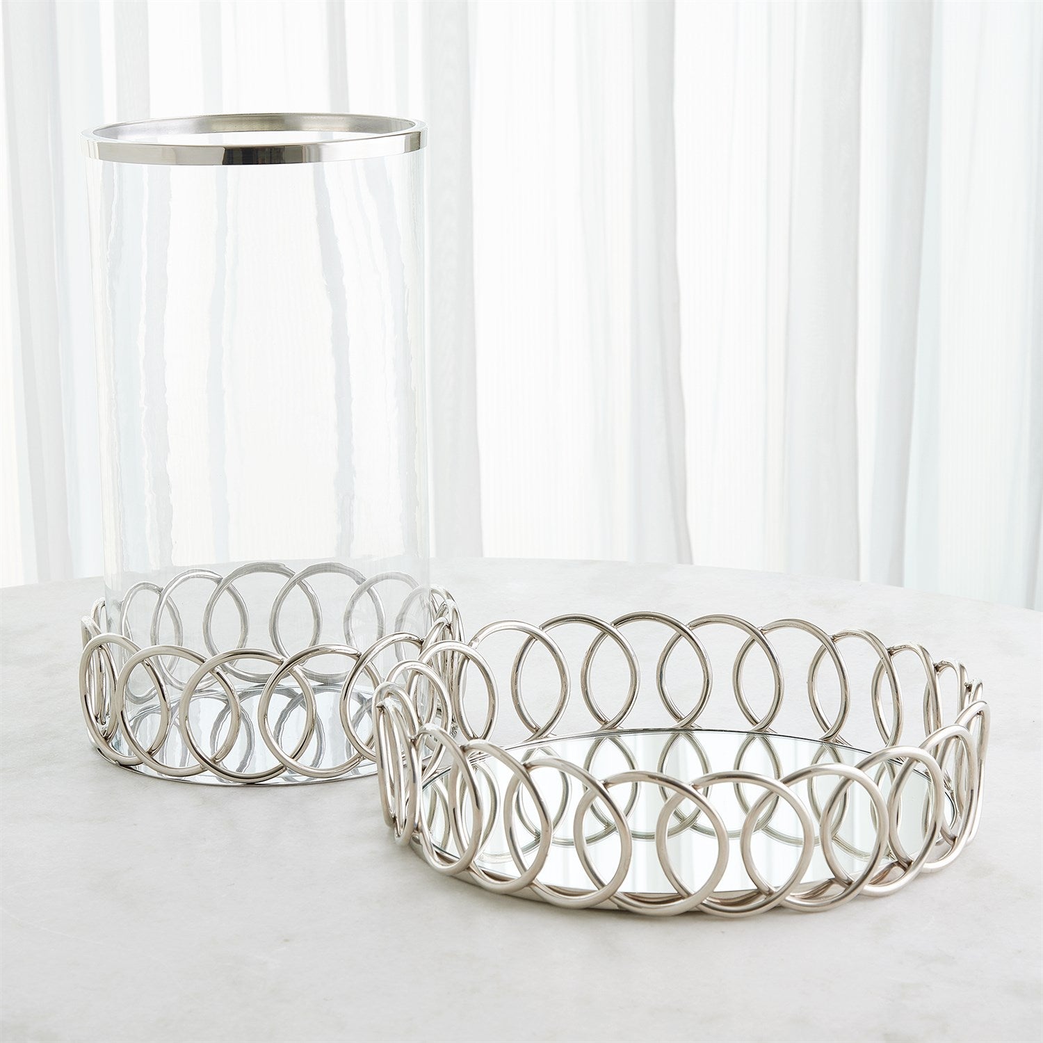 Description: The Bree Hurricane & Tray are a stunning blend of craftsmanship and style, handcrafted from stainless steel with a sleek nickel finish. These elegant pieces are perfect for adding modern sophistication to any space.