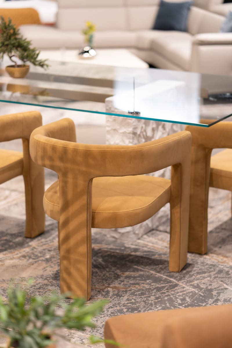 Description: Our charming Ferah Modern Dining Chair is an elegant addition to any dining space. Upholstered in Tan Fabric, this chair features a 100% polyester fabric that offers both comfort and durability. Its cast iron legs provide stability.