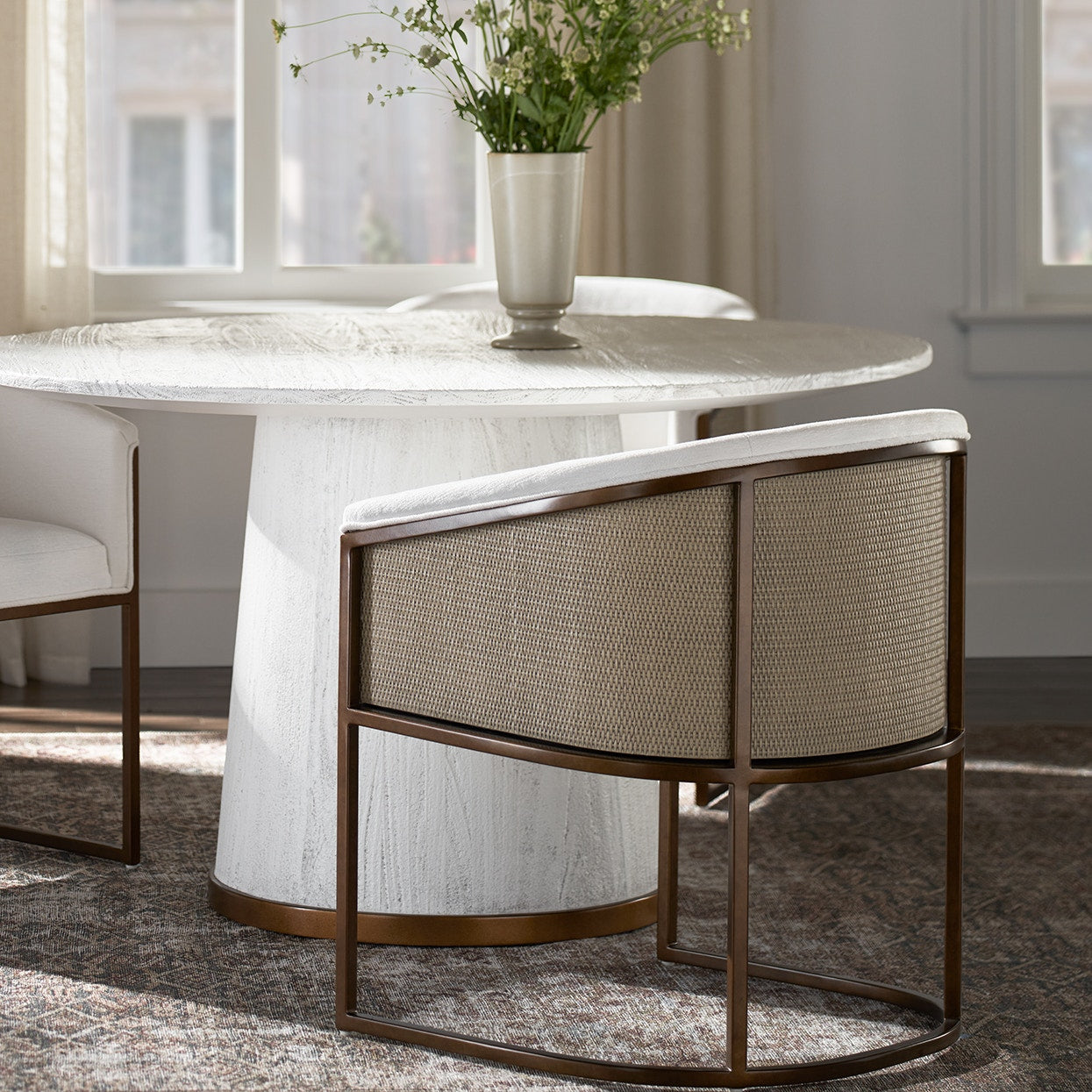 Chelsea Performance White Weave Fabric & Gold Dining Chair