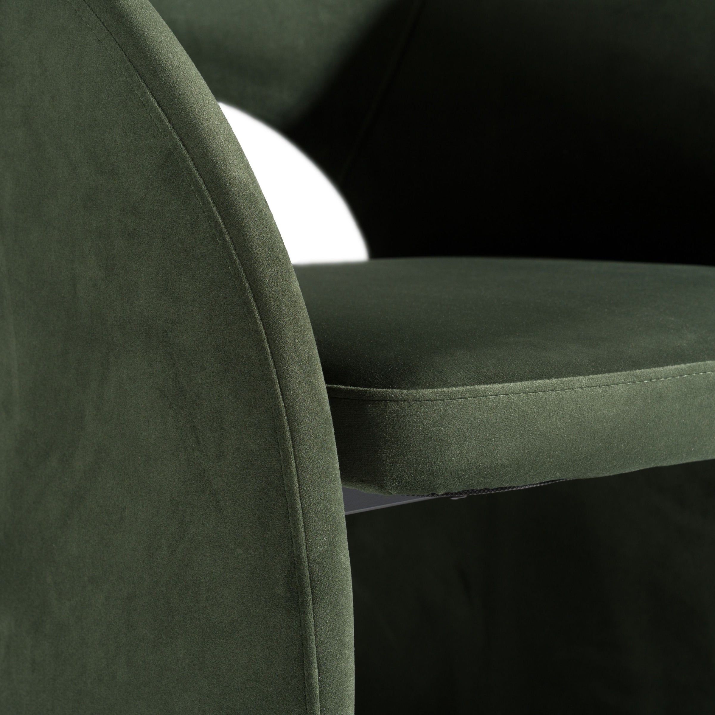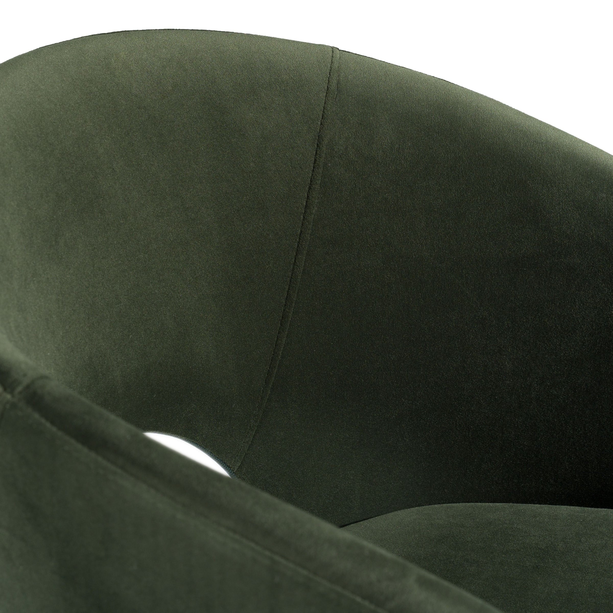 Description: The charming Digby Modern Dining Chair features characteristics of Art Deco design with a modern twist, from its wraparound silhouette to its deep green Jade cushions. A cut-out back gives the appearance of a floating seat, giving the chair a whimsical and lavishly modern appearance.