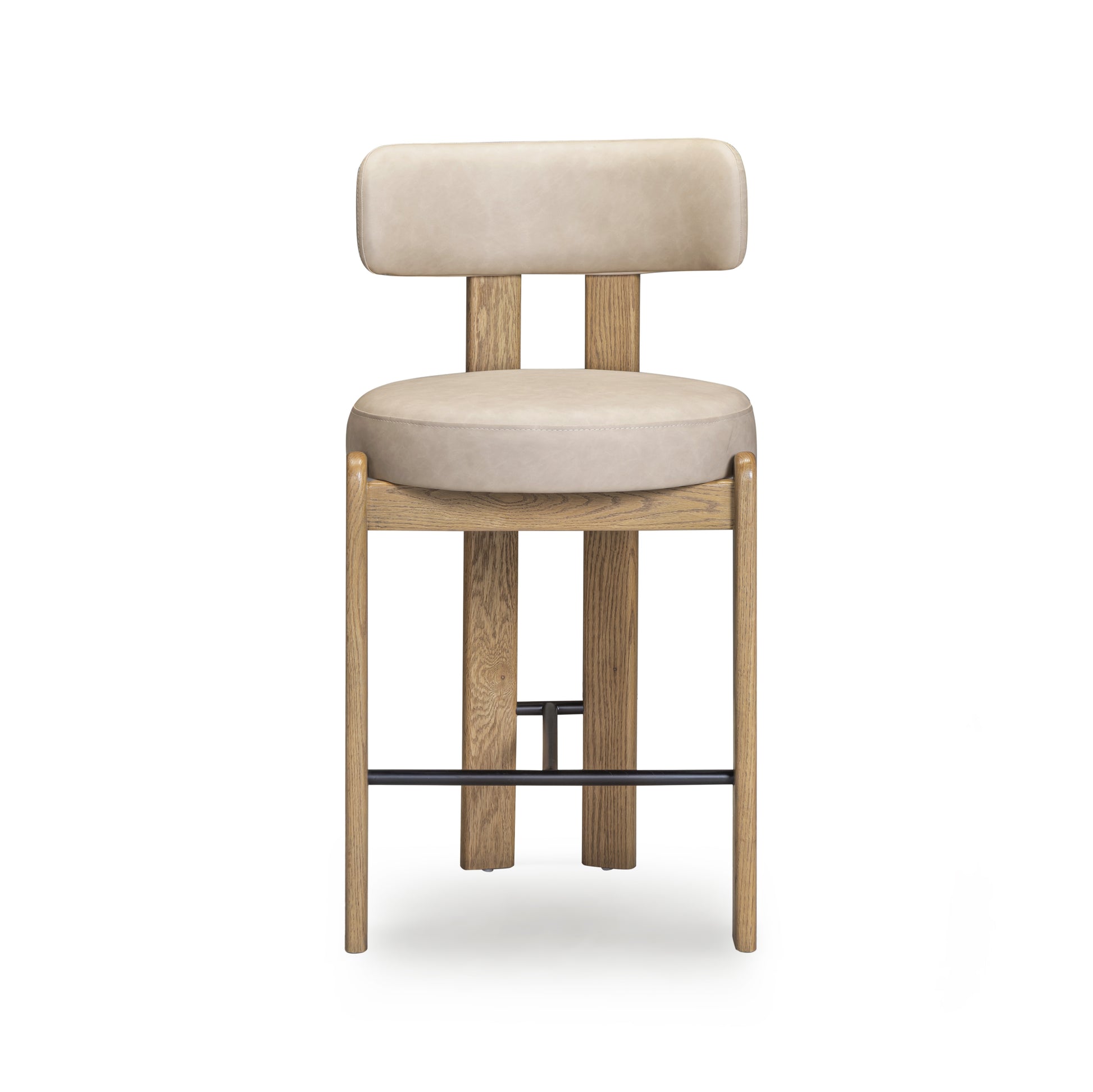 Description: The Ophelia Stool brings the same retro Memphis-inspired style you love from the Ophelia Dining Chair, now at counter height. Its curved, earthy wood frame and wipeable vegan leather in cream, taupe, or saddle brown make it both stylish and practical. Plush foam seating ensures comfort, while easy-clean materials keep it looking sharp, making it the perfect addition to busy kitchens, home bars, or high-top dining spaces.