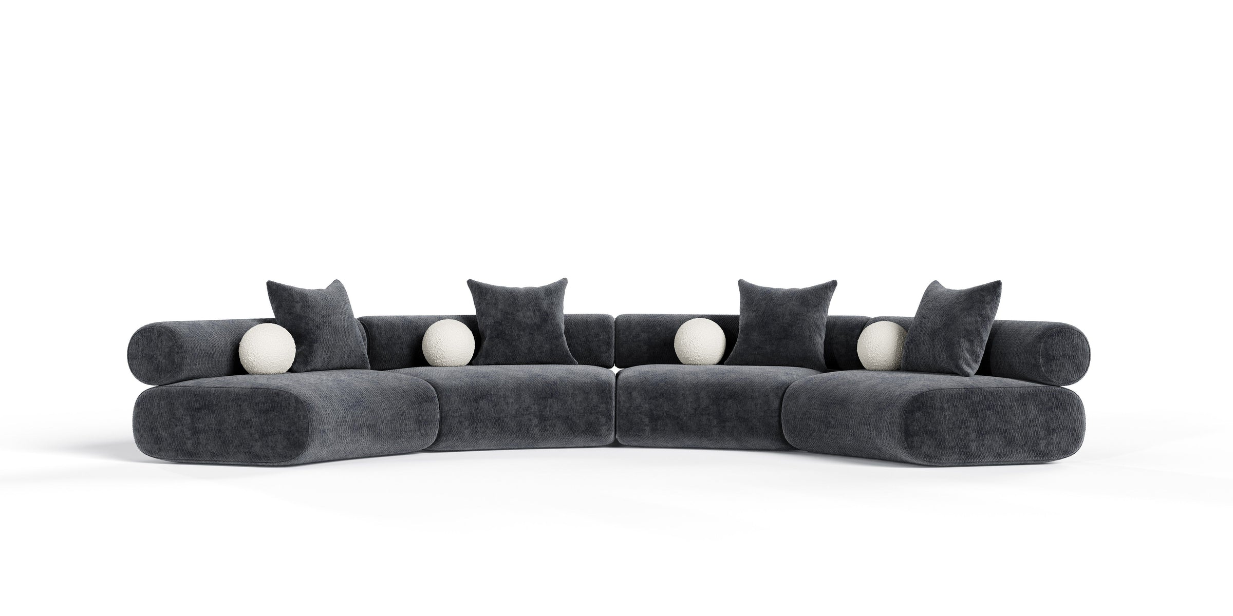 Evelyn 4 Piece Dark Grey Curved Modular Sectional Sofa