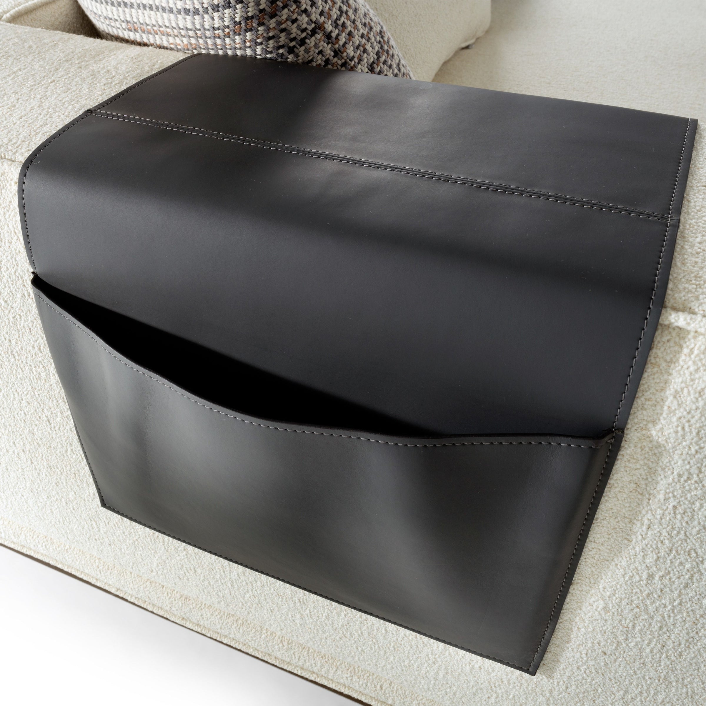 - Sectional Includes: RAF 2 Seater With End Table, Armless Seat, Corner Square Coffee Table, Sofa With Leather Magazine Bag & 12 Throw Pillows