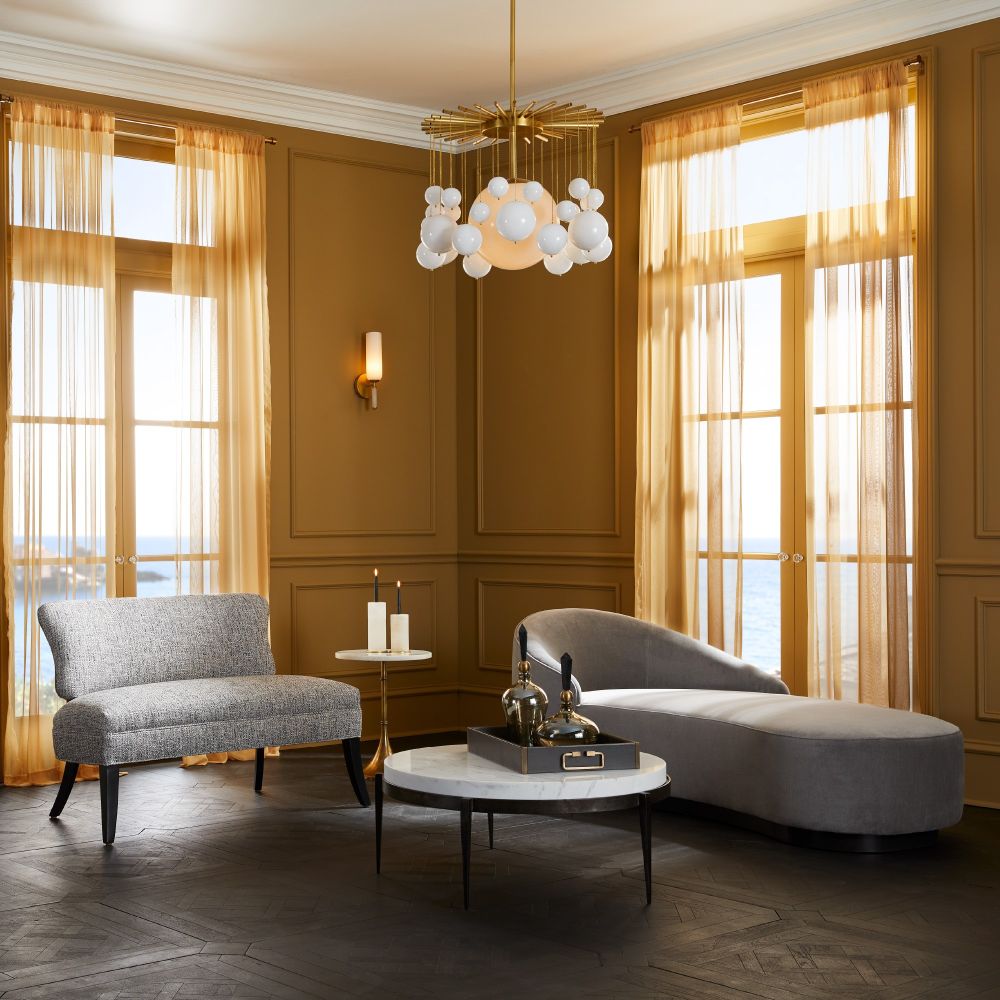 Description: This handsome devil is like its predecessors in the Turner collection but with the arm working the other side. The blend of elegant upholstery and the grey ash wood is all glamour, appealing to style makers who appreciate bold design. The silhouette features one long sexy curve perfect for lounging. Covered in sharkskin velvet for an elevated look. Fabric and finish will vary.