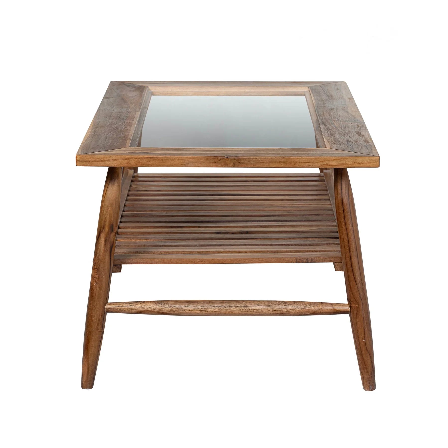 - Enhance your outdoor experience with this rectangular coffee table, a harmonious blend of solid teak wood and tempered glass, meticulously crafted to redefine versatility in any setting.
