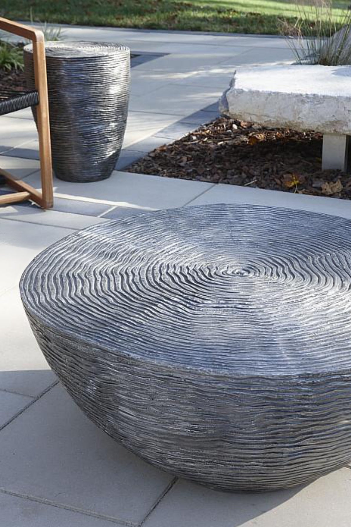 The Puddle Coffee Table is made of aluminum in a mix of black and silver finishes, the intermingling of the dark and bright highlighting the peaks and valleys of the striated surface to heighten the texture even further. This aluminum coffee table reflects the ethos that personifies a sense of modern organic.