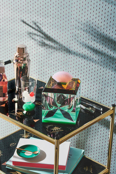 Description: The vintage inspired ice bucket is perfect for the sparkling moments. Made of hand-crafted crystals this bucket is entirely determined by its elegance. The bodacious lid makes this bucket a showpiece. The smoky grey diamond shaped crystal pieces on the side of the bucket gives reference to the carnivalesque feel. This ice bucket makes a fabulous addition to any dining table setting and will surely be admired by all your guests.