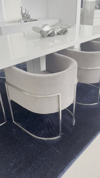 Fabulously chic and demanding attention, the Jules Chair dazzles from any angle. This stunning chair boasts a rich velvet upholstery supported by a stainless steel frame, making it both stylish and comfortable.
