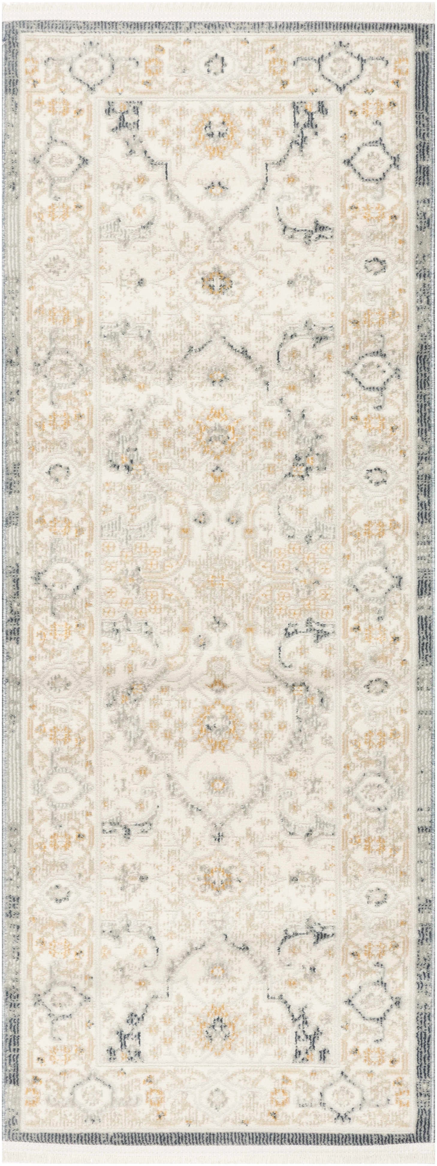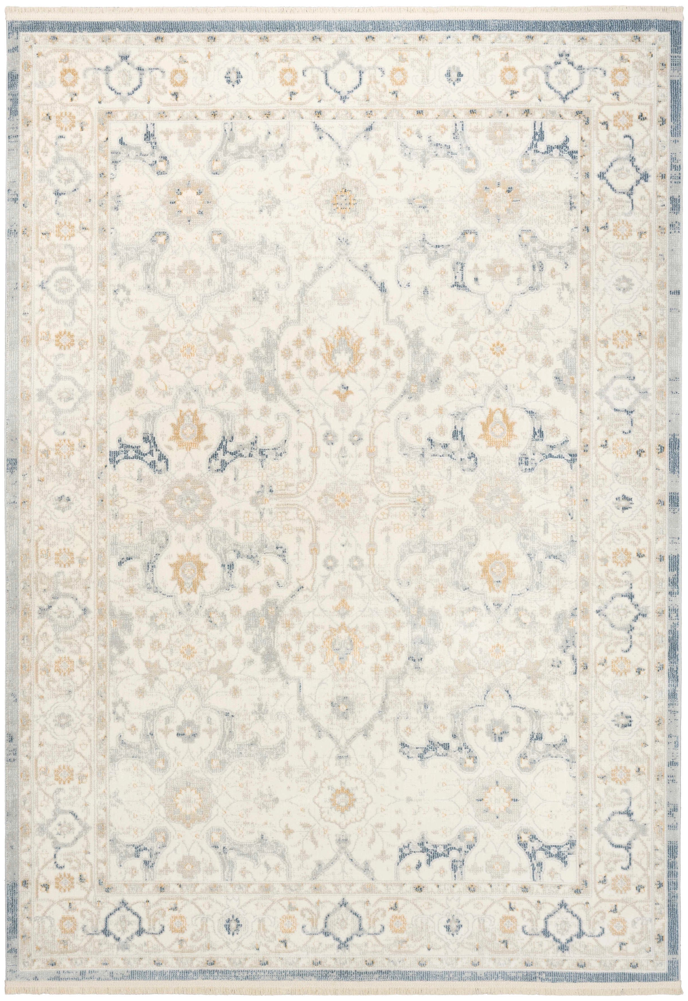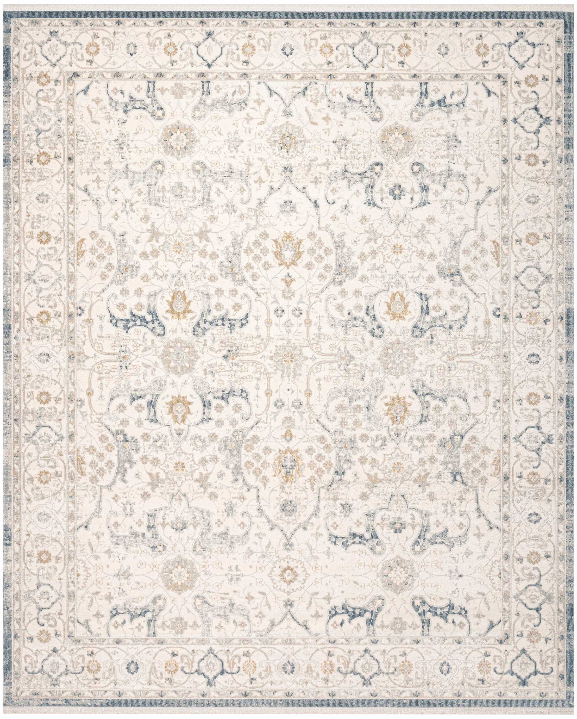 Description: Create a calming backdrop for your furnishings with this vintage-style light blue rug from the Isabeau collection. The ornate floral pattern, complete with soft tonal variations and fringe edges, adds an elegant touch that works beautifully in modern, farmhouse, and cottagecore decor.