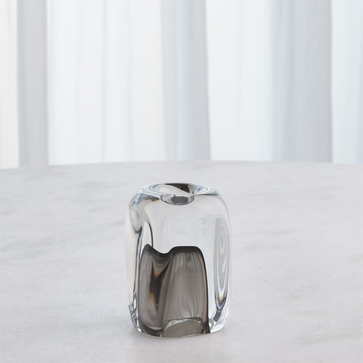 Description: The Miri Grey Tea Light Holders/Vases are crafted from hand-blown Polish art glass featuring encased colors achieved by layering grey and clear glass. Versatile in design, these pieces can be used as elegant tea light holders or flipped to serve as striking vases, enhancing any space with their rich beauty.