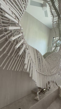Description: Mirror features round core rattan sticks accented with rattan peel bindings over a metal frame all in a chalk-white finish. Mirror has a metal cleat for mounting.